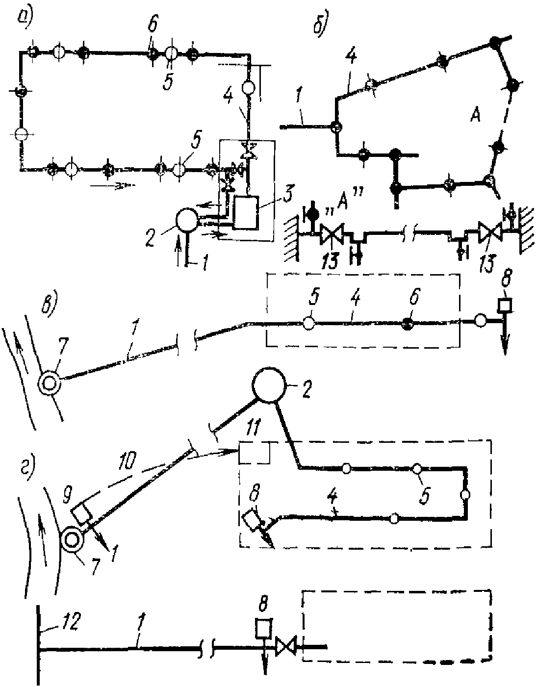 а - водопроводная кольцевая; б - тупиковая с сухой