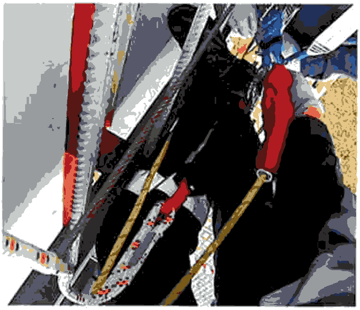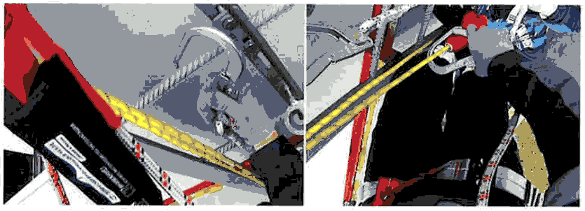 необходимо зависнуть на грудном зажиме "Кроль" (рис. 37) и проконтролировать страховочный зажим "Капля", сдвинув его максимально вверх по стропу;