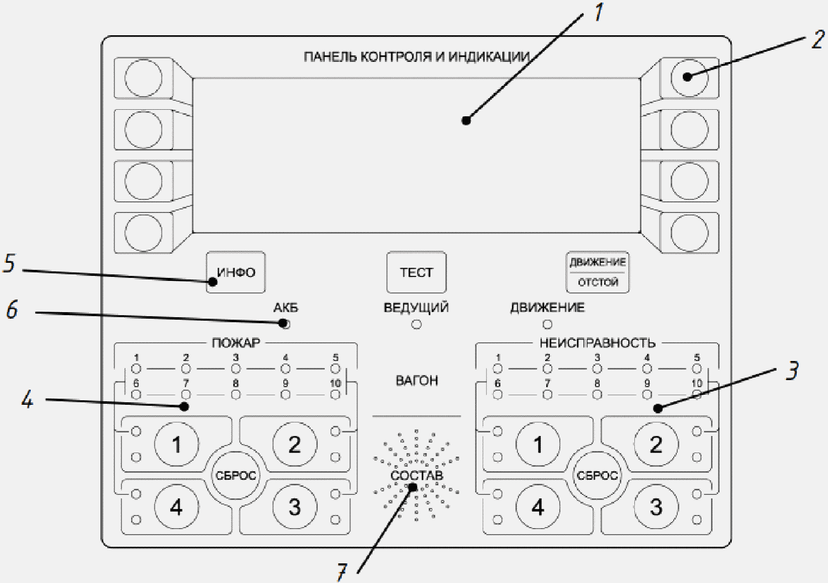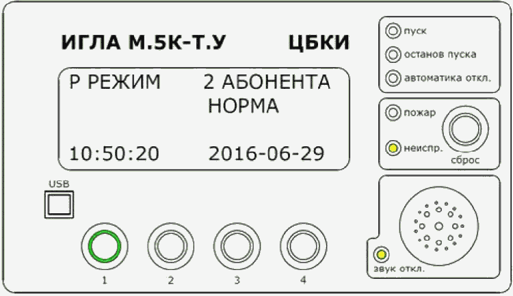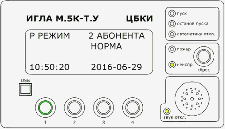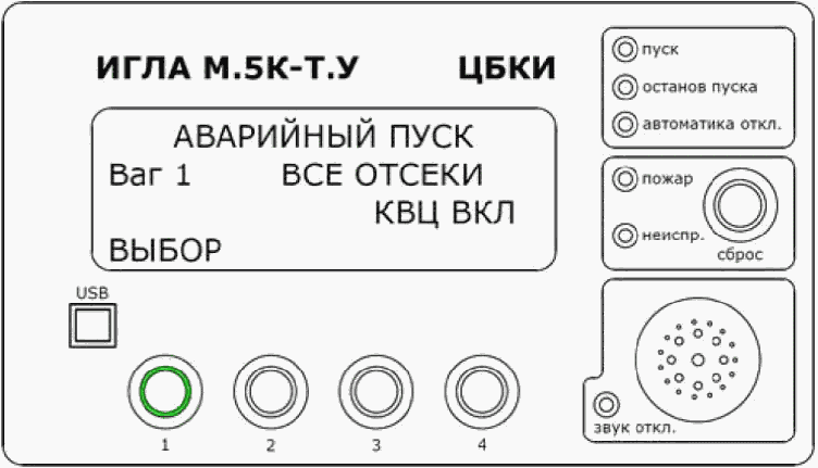 В состоянии "Норма" должен гореть зеленый светодиод на кнопке "1". Это состояние означает, что все блоки, подключенные к ЦБКИ, работают исправно.