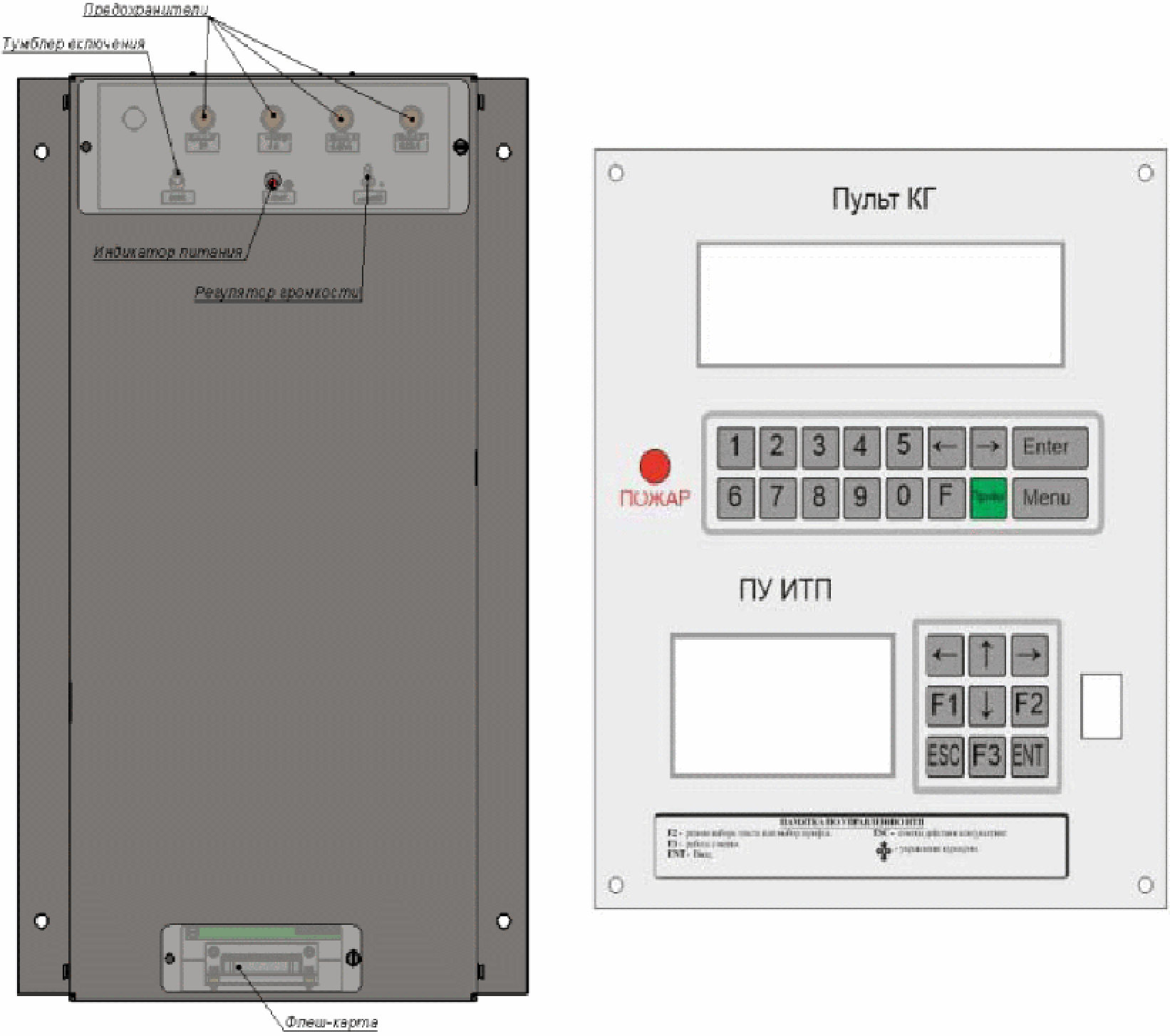 ПКП - приемно-контрольный прибор;