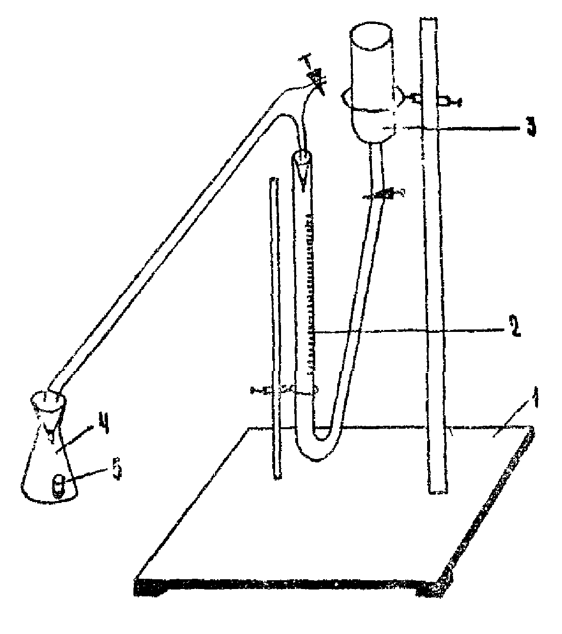 1 - штатив; 2 - бюретка; 3 - сосуд с 1%-ным раствором