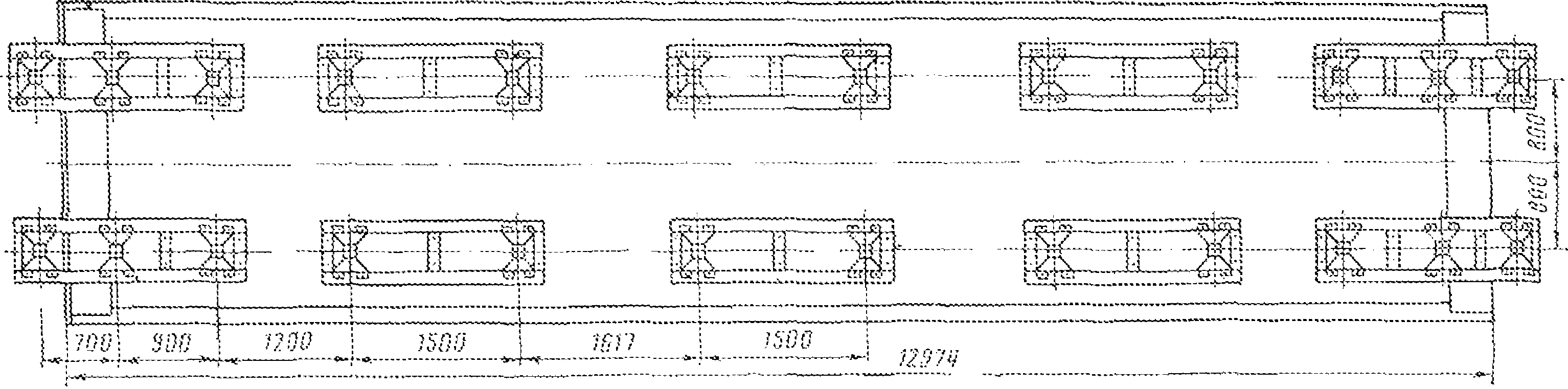 1.4. Оборудование представляет собой комплект устройств, часть которых закрепляют на железнодорожных платформах, а часть непосредственно на пакетах звеньев рельсо-шпальной решетки. Организация, получившая для транспортировки пакетов платформы из рабочего парка, должна смонтировать на платформах обоймы роликового транспортера, съемные порталы (УСО), а также лестницы, переходные фартуки и замки рычагов автосцепки по схемам, указанным на