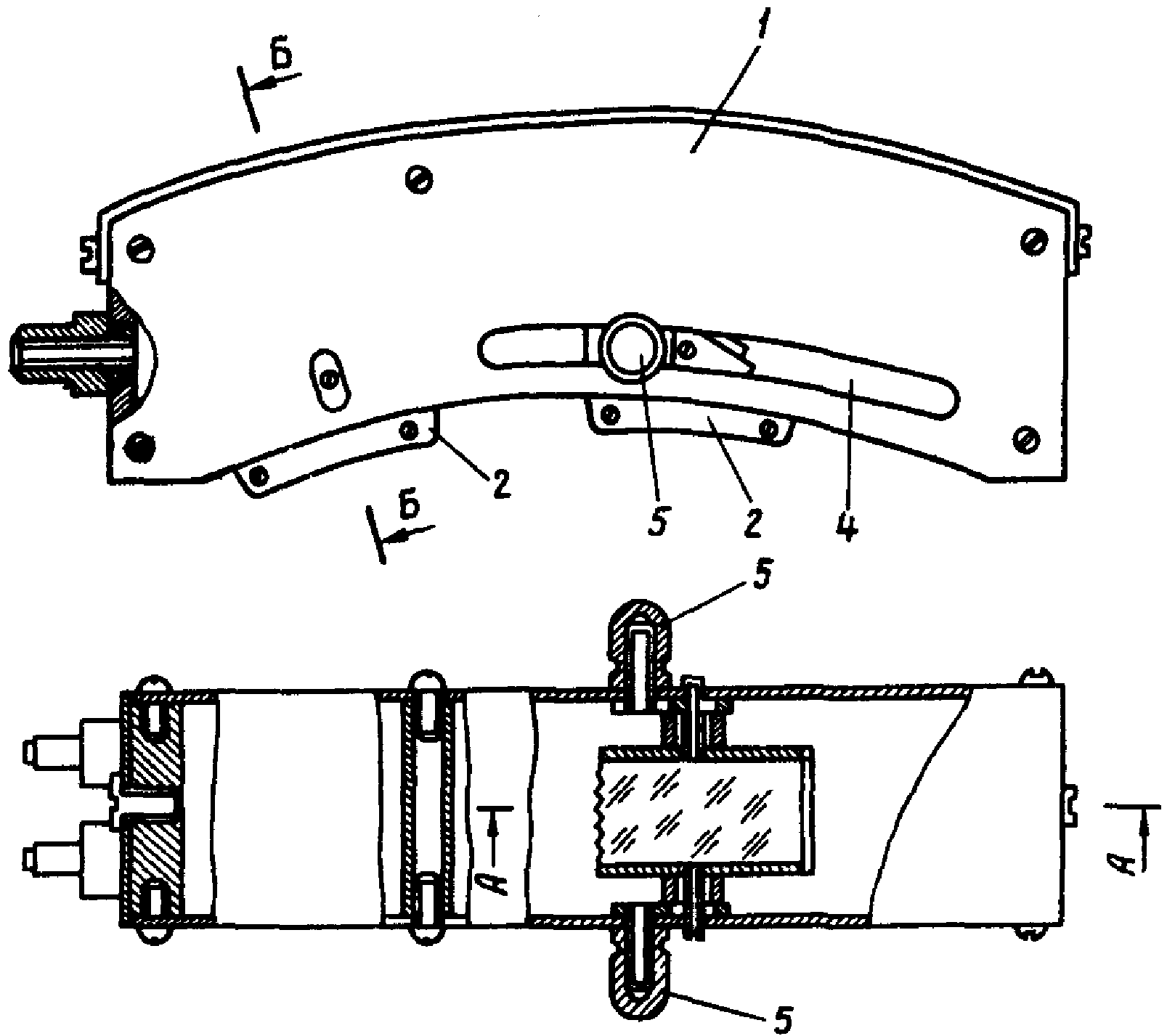 8. Акустический блок устанавливают на испытательный образец и удерживают на нем с помощью магнитных контуров. Искатель 2 перемещают по направляющим до появления на экране прибора импульса F, условно называемого "служебным" и при максимальном его значении фиксируют винтами 5 искателя 2 (см.