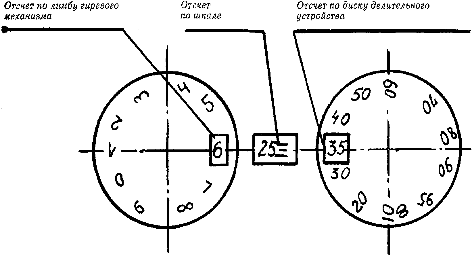 рис. 1.4а показано положение шкалы и нониуса, соответствующее отсчету "+ 11,8 °S" (нуль нониуса расположен правее нуля шкалы на 11 полных делений, и в правой части нониуса с одним из делений шкалы совмещается его восьмое деление).
