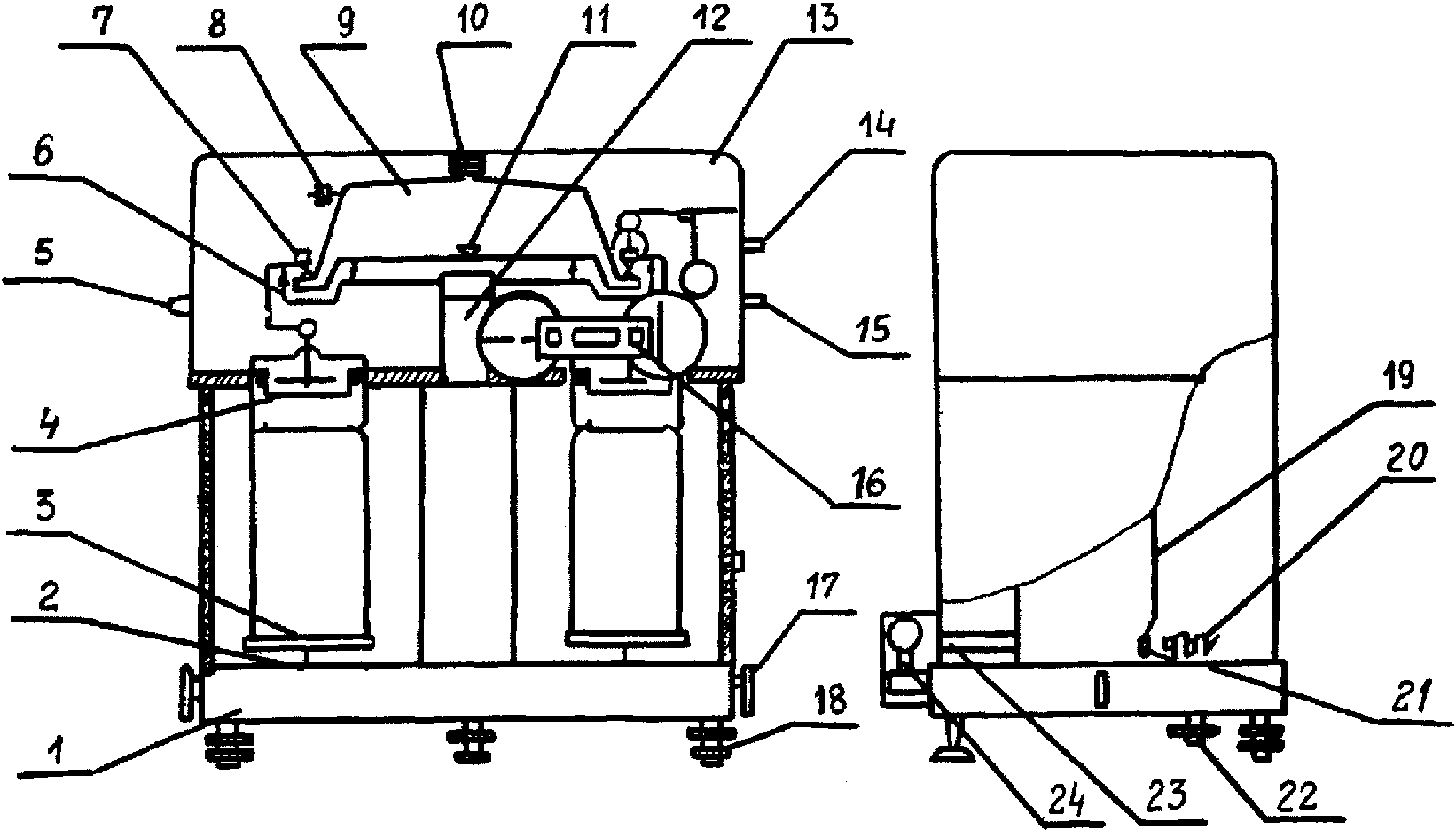 Траверса 10 крепится болтом к основанию 13 с вмонтированным внутрь него понижающим трансформатором.