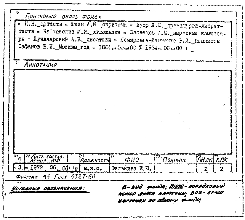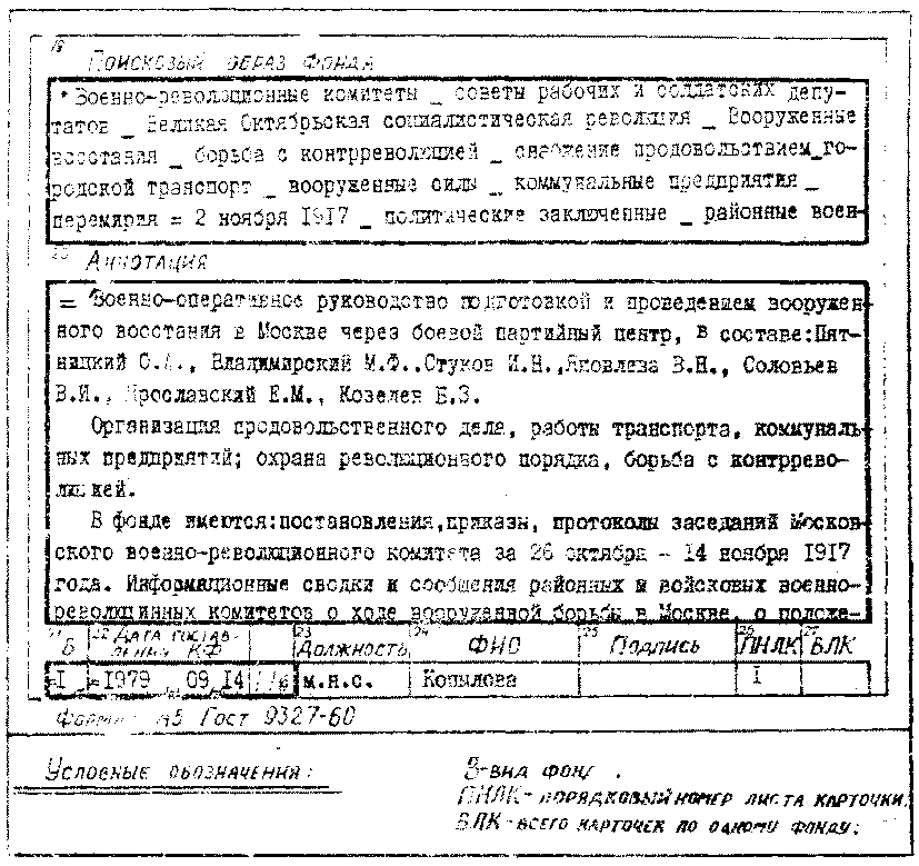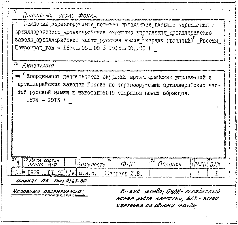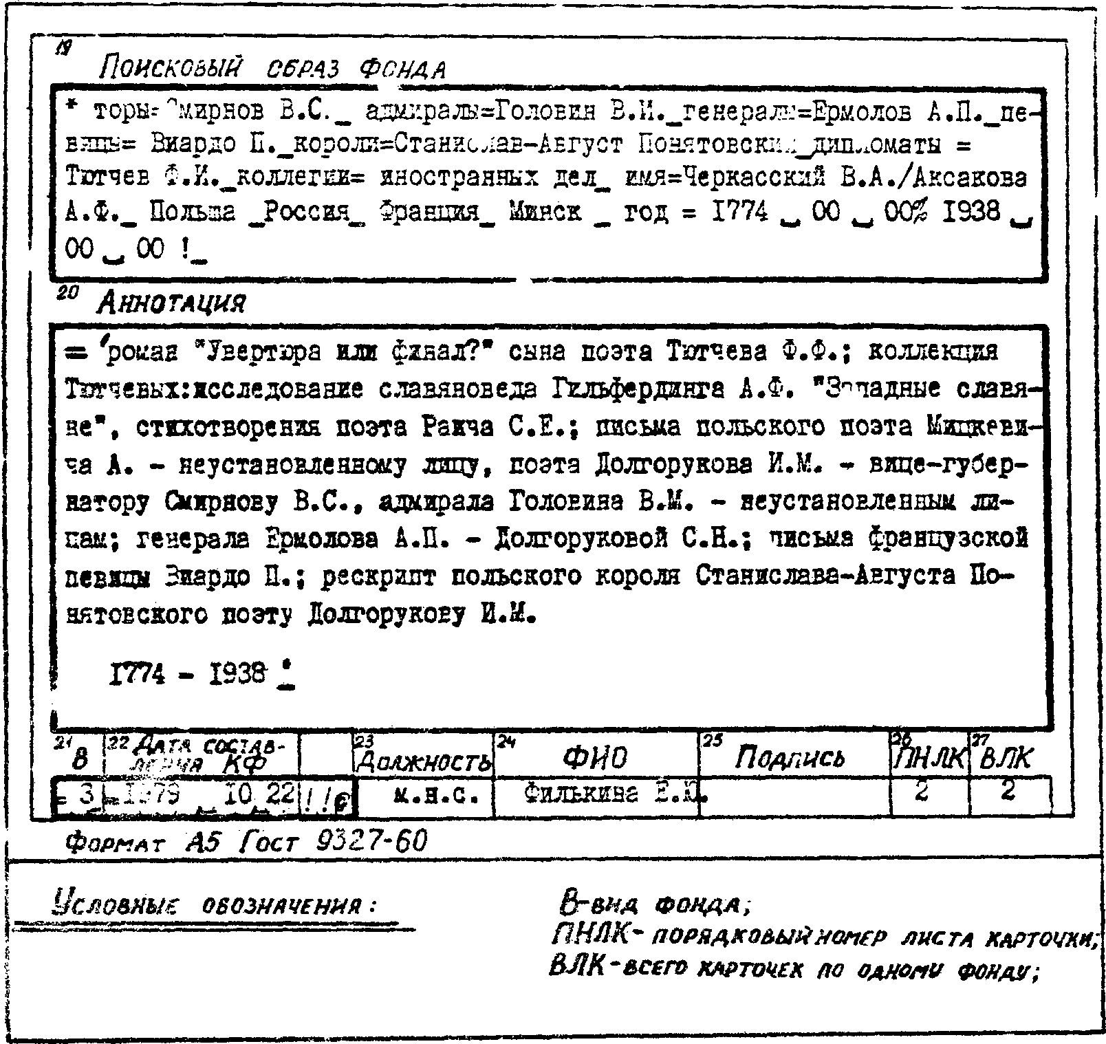"Инструкция по заполнению и отправке карточки фонда для АСНТИ по документам ГАФ СССР"