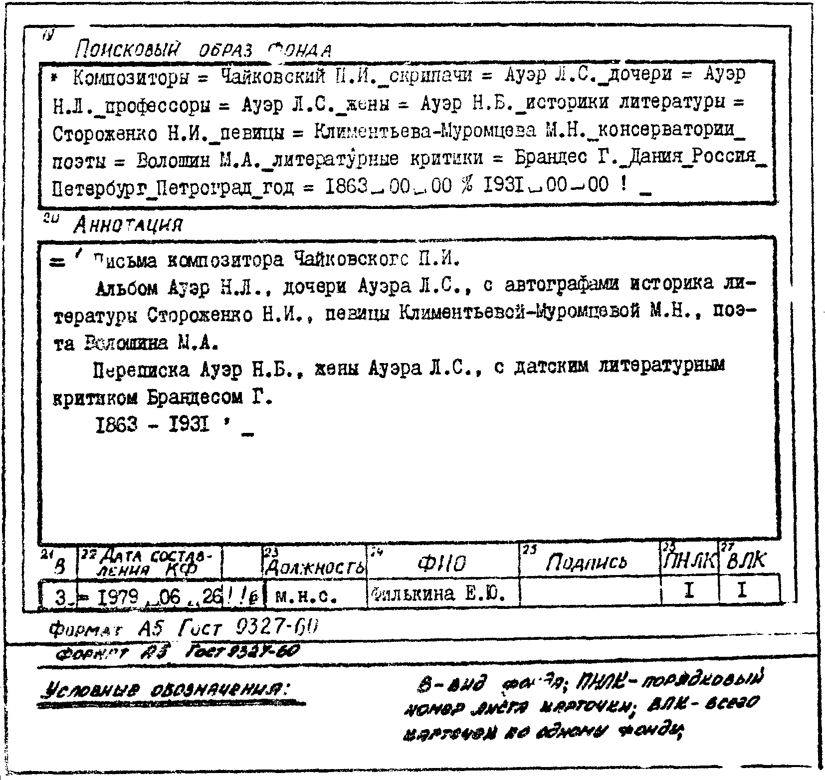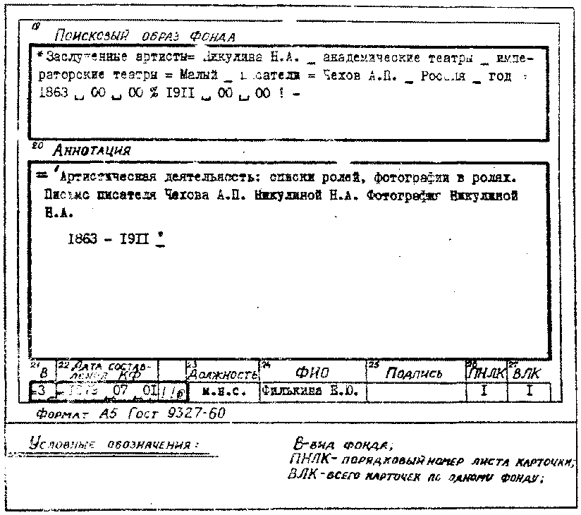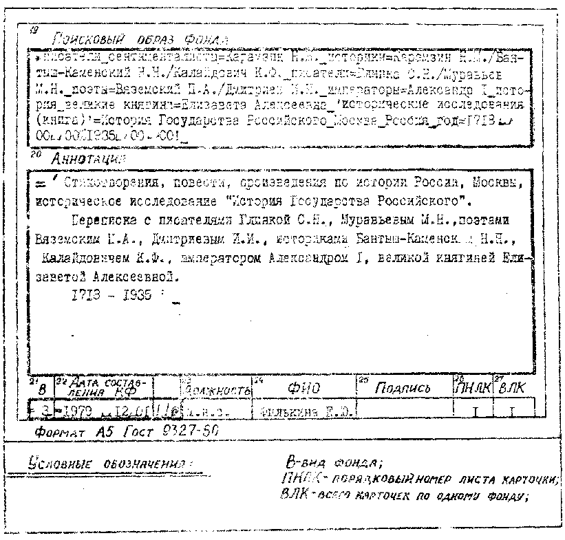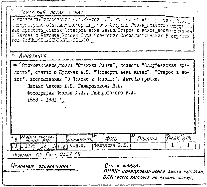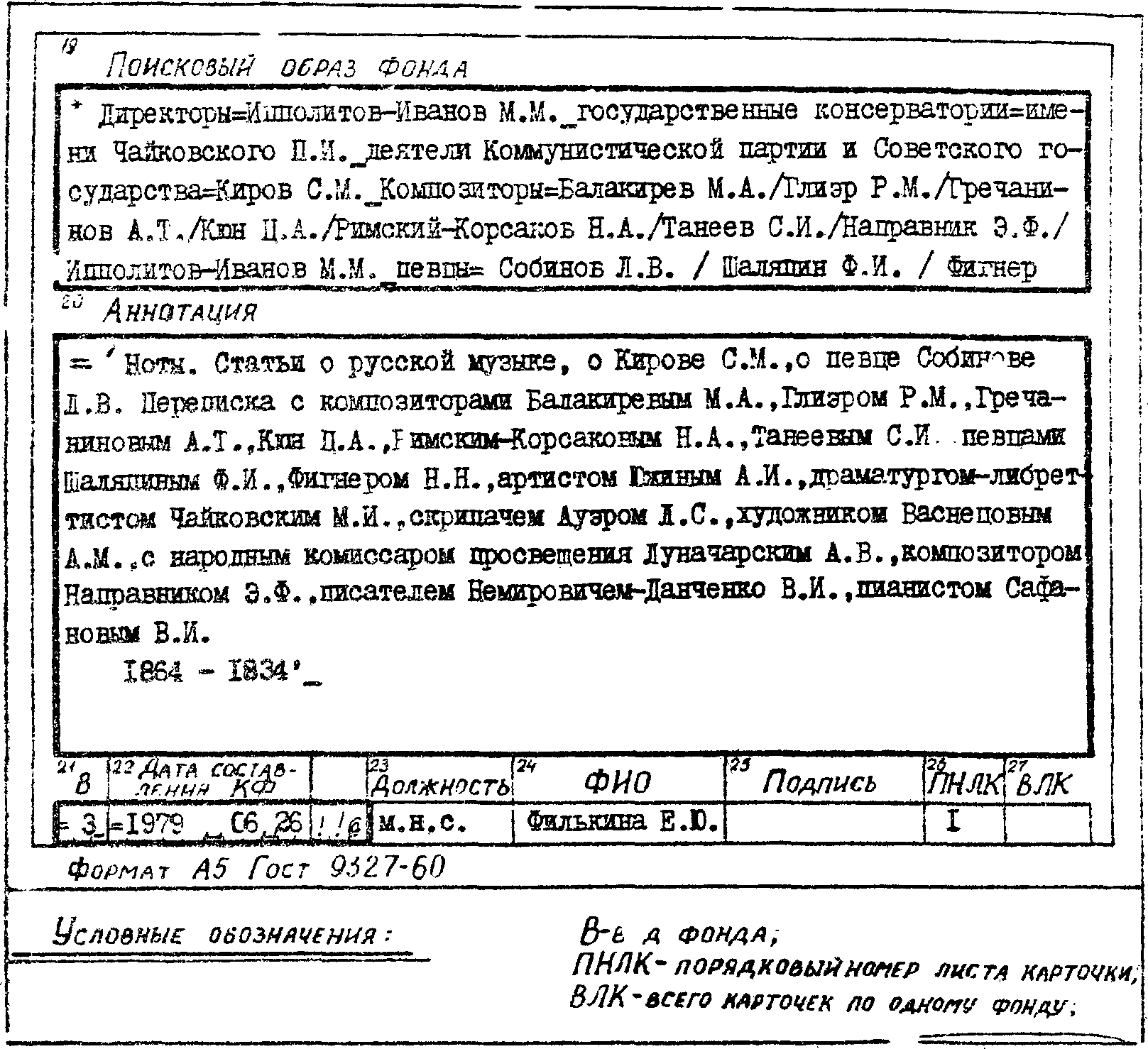 "Инструкция по заполнению и отправке карточки фонда для АСНТИ по документам ГАФ СССР"