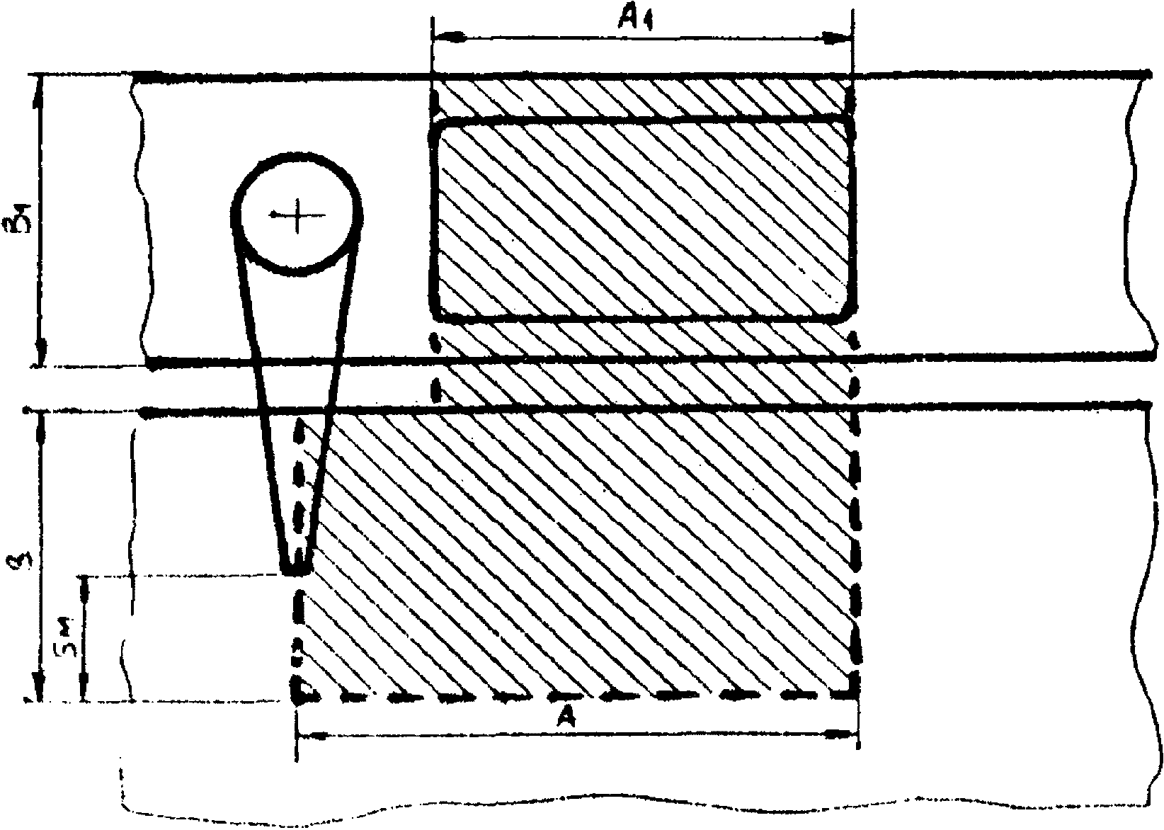 3. На судне "опасная зона" ограничивается размером A1 вдоль судна, равным длине люка, и размером B1 поперек судна, равным ширине судна.
