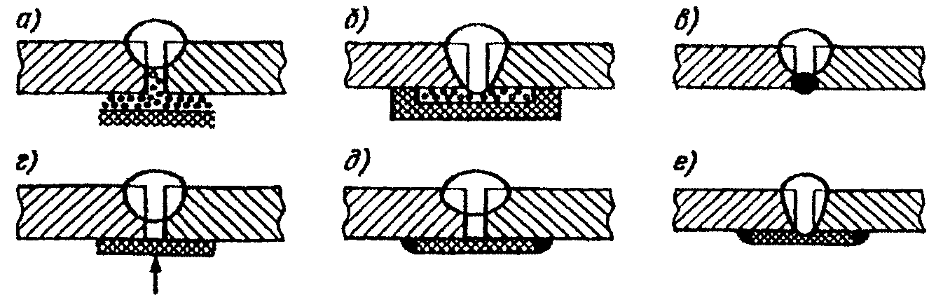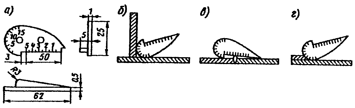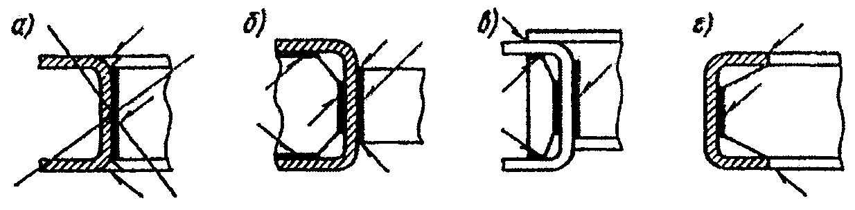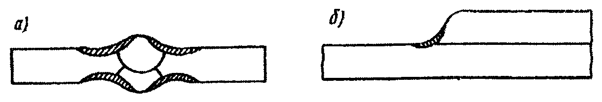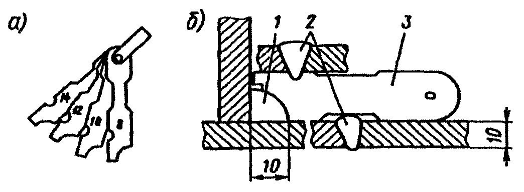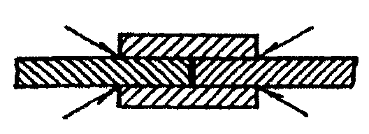 При выполнении нахлесточных соединений можно допускать небольшой подгиб края накладки (рис. 1.1, в) к поверхности основного металла до угла