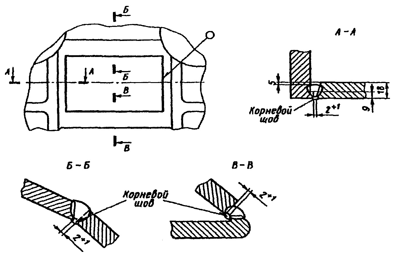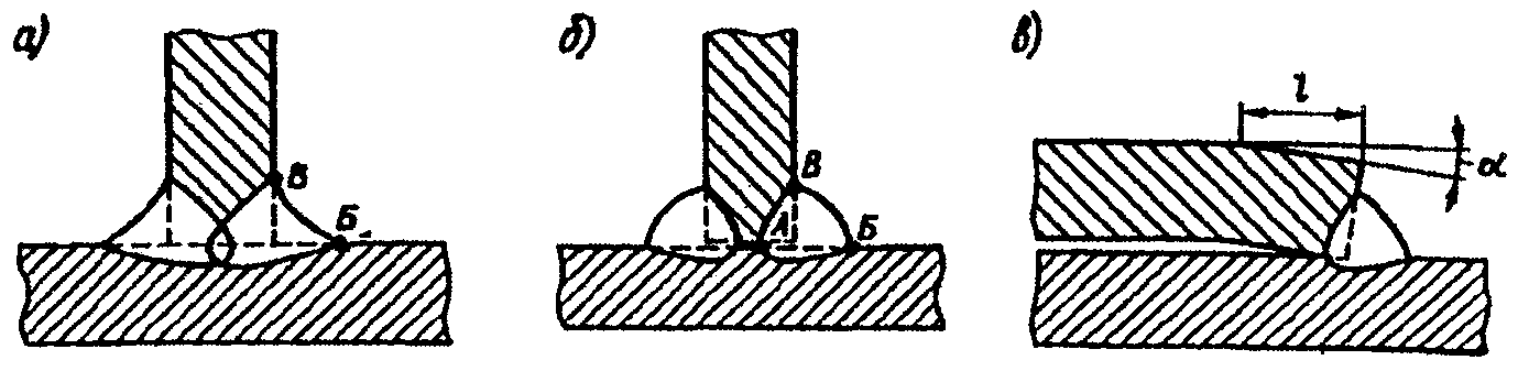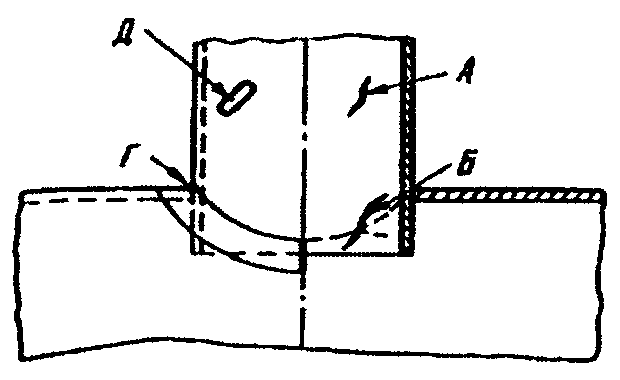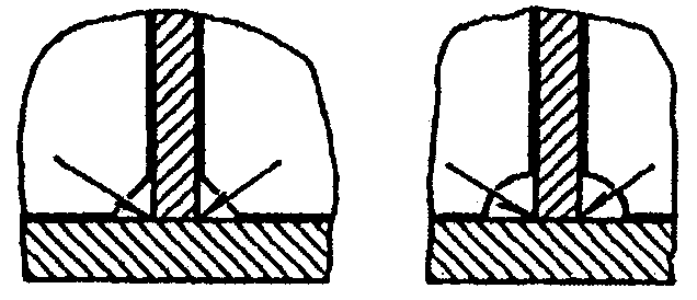 Для снижения концентрации напряжений в угловых швах тавровых соединений в местах перехода от металла шва к основному металлу (точки Б и В в сечении шва -