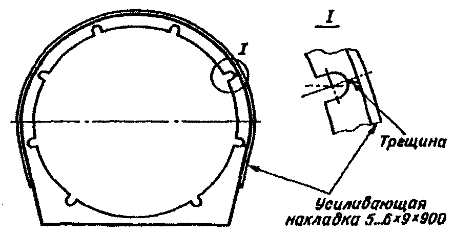 Допускается определять границы трещины путем нагрева ее газовой горелкой до температуры 100 - 150 °C. Керном намечают расположение трещины для последующей разделки. При применении воздушно-дуговой, газокислородной строжки или электродуговой резки допускается концы трещин не засверливать. Разделку производить с плавным выходом на поверхность на 50 мм далее концов трещины.