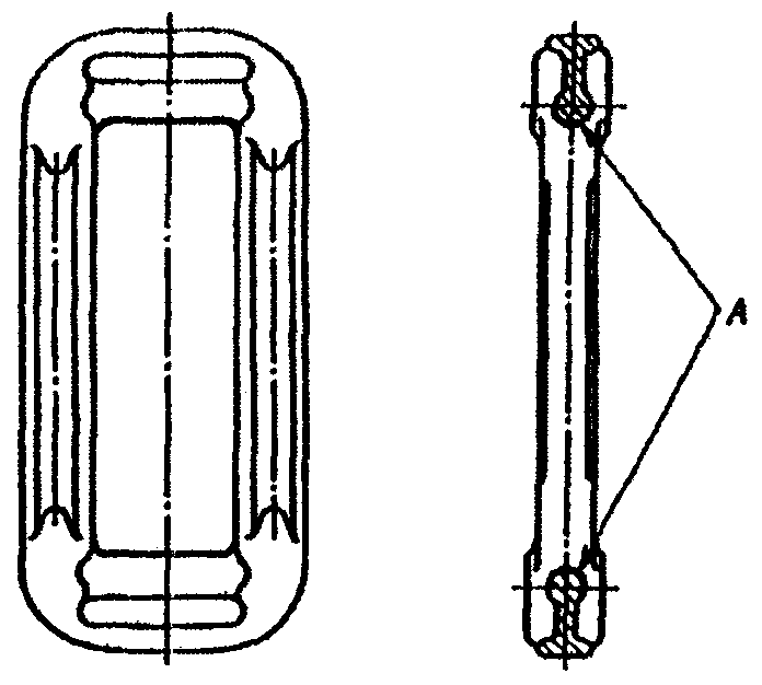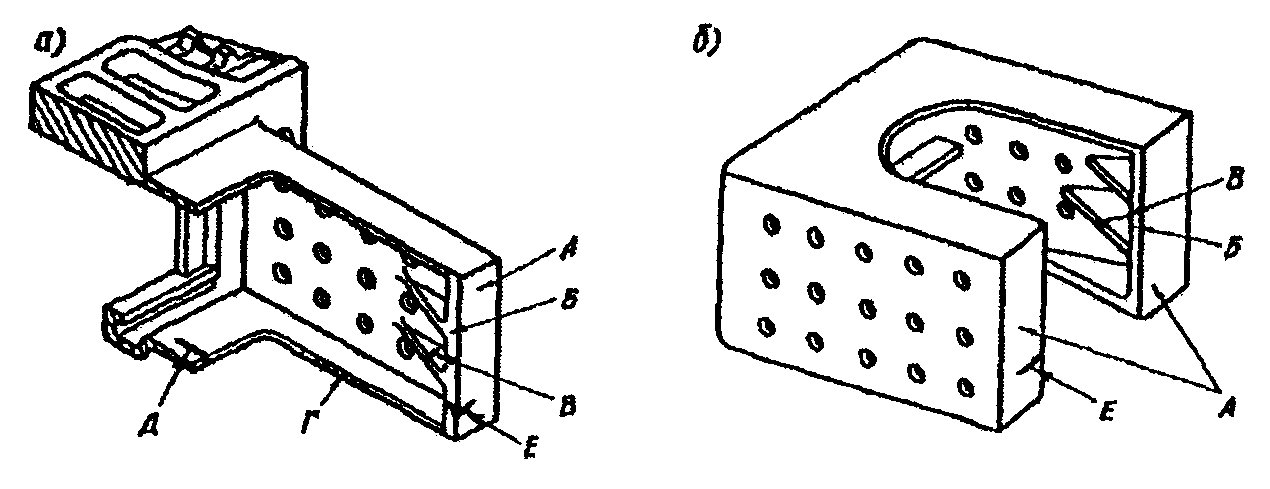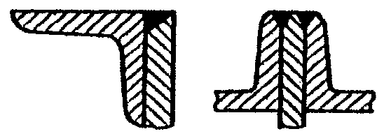 б) швы необходимо выполнять вогнутыми при условии обеспечения полного провара стенки таврового соединения и корня шва (см. рис. 1.1, а), а при наличии внутреннего концентратора (точка А) - выпуклыми (см. рис. 1.1, б). Угловые швы нахлесточных соединений с этой же целью следует выполнять выпуклыми (рис. 1.1, в).
