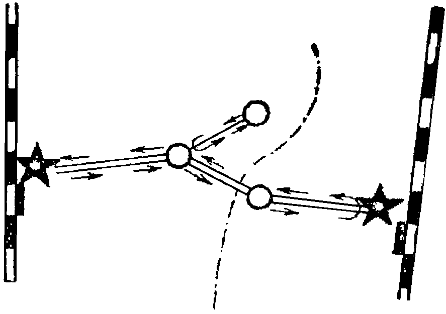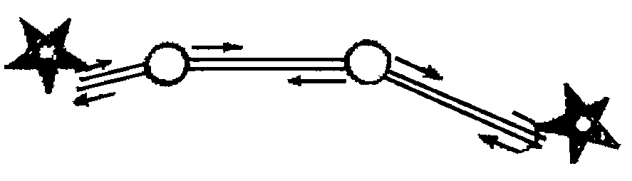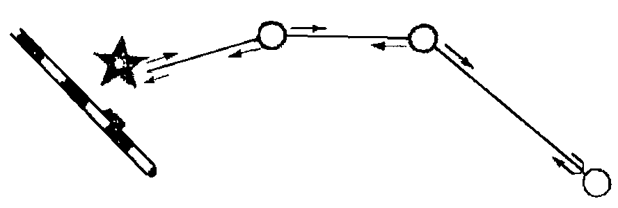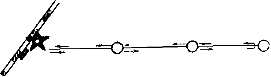 б) встречное движение характеризуется тем, что транспорт отправляется из начального и конечного пунктов тракта навстречу друг другу или из начального и промежуточных предприятий связи, расположенных на тракте (рис. 5).