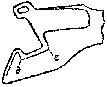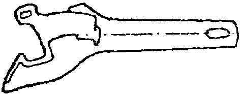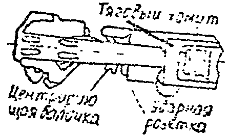 шаблоном 827р. Для проверки шаблон перемещают в контуре зацепления по всей высоте так, чтобы направляющая труба шаблона располагалась по закруглению в месте перехода малого зуба в ударную стенку зева, а плоская часть проходила через зев и обхватывала малый зуб (рис. 2.4). Контур зацепления годен, если шаблон свободно проходит через него по всей высоте головы корпуса.