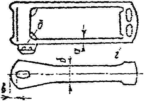 Если необходимо наплавить ударные поверхности зева и малого зуба корпуса автосцепки, то толщину наплавляемого слоя определяют величиной зазора "а" и "б" (рис. 2.8) между наплавляемой поверхностью и ребром профильной планки