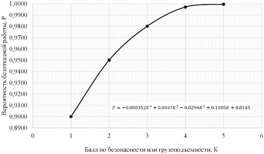 Оценка сооружения по безопасности не может принимать значение меньшее 1 балла, что соответствует минимально допустимой вероятности безотказной работы 0,9000.