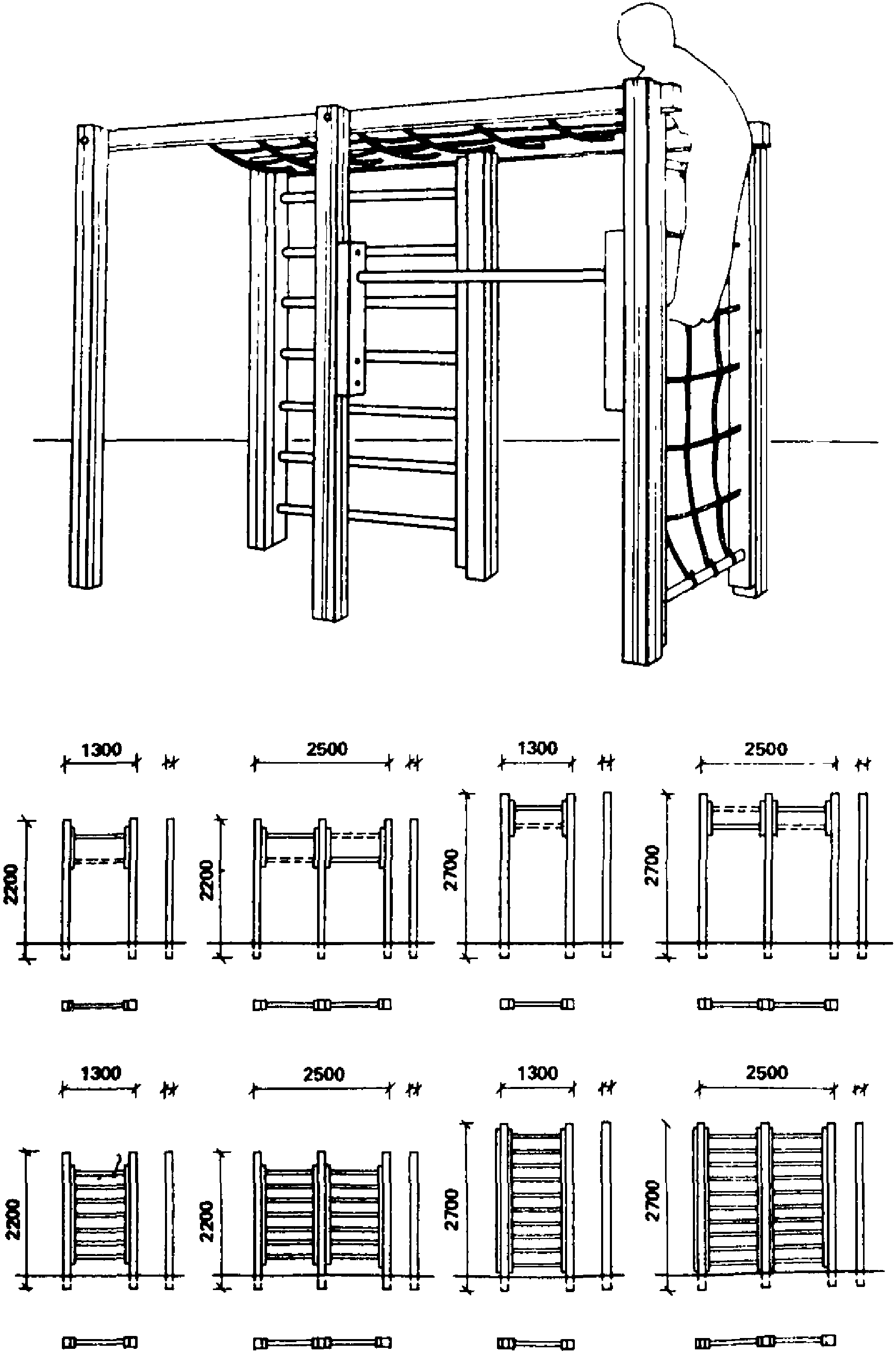 В настоящее время в ЦНИИЭП учебных зданий накоплен значительный опыт индивидуального, типового и экспериментального проектирования детских пришкольных участков, основным, наиболее важным предметом оборудования которых является многоцелевое оборудование.