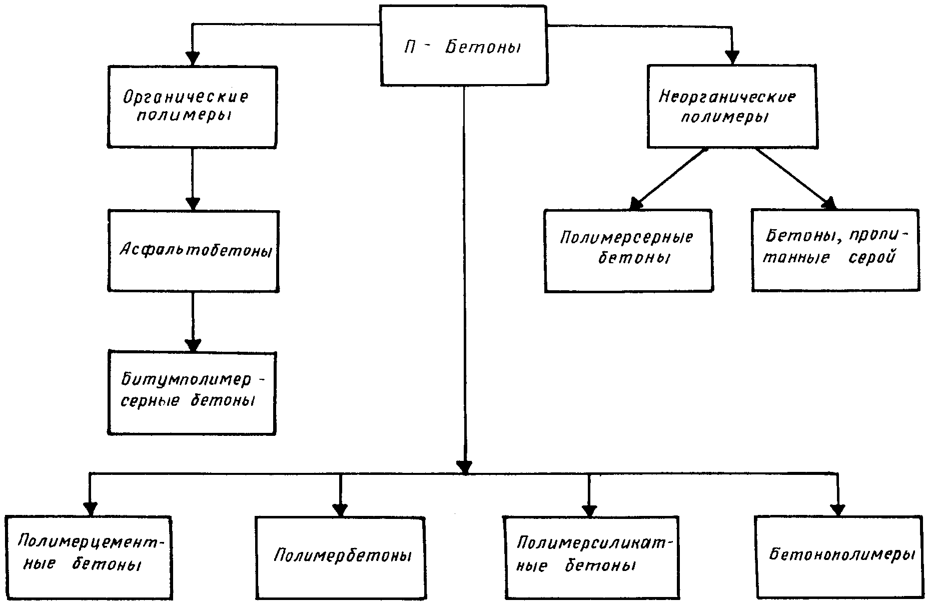 1. Из общей группы П-бетонов в настоящих Рекомендациях рассматриваются методы подбора составов только полимербетонов и полимерсерных бетонов (см. упрощенную схему рис. 5).