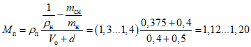 Принимаем соотношение между количеством наполнителя и связующего равным 1,3; плотность мастики