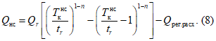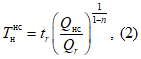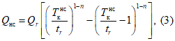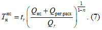 - момент времени, при котором расход дождевого стока, поступающего в насосную станцию, начинает превышать ее максимальную производительность, мин.;