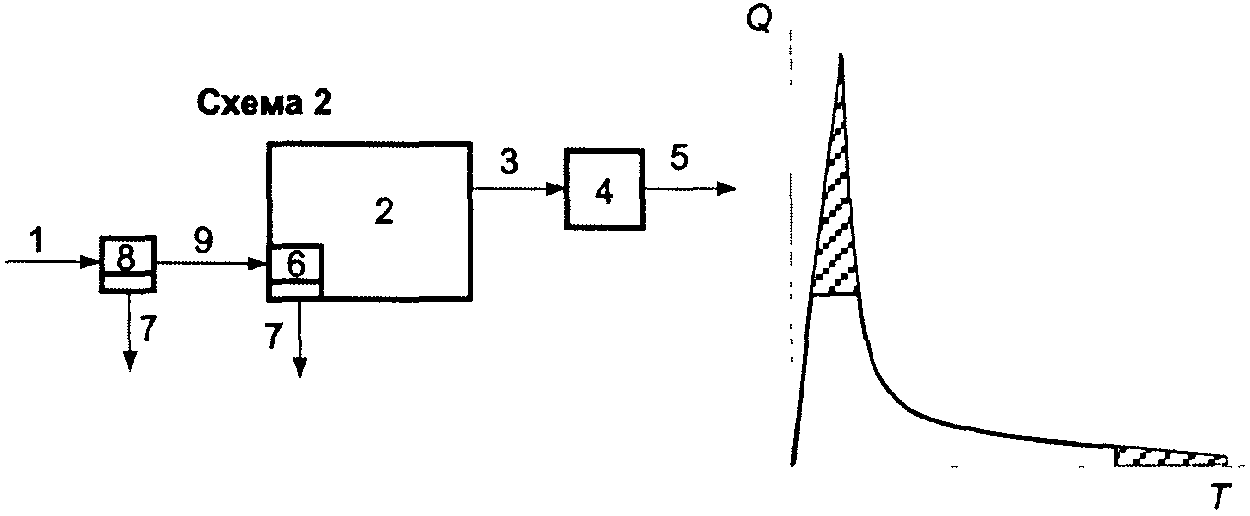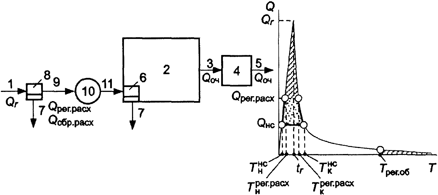 схема регулирования 2) и направляемого самотеком непосредственно в аккумулирующий резервуар или на насосную станцию с последующей перекачкой в аккумулирующий резервуар, л/с;