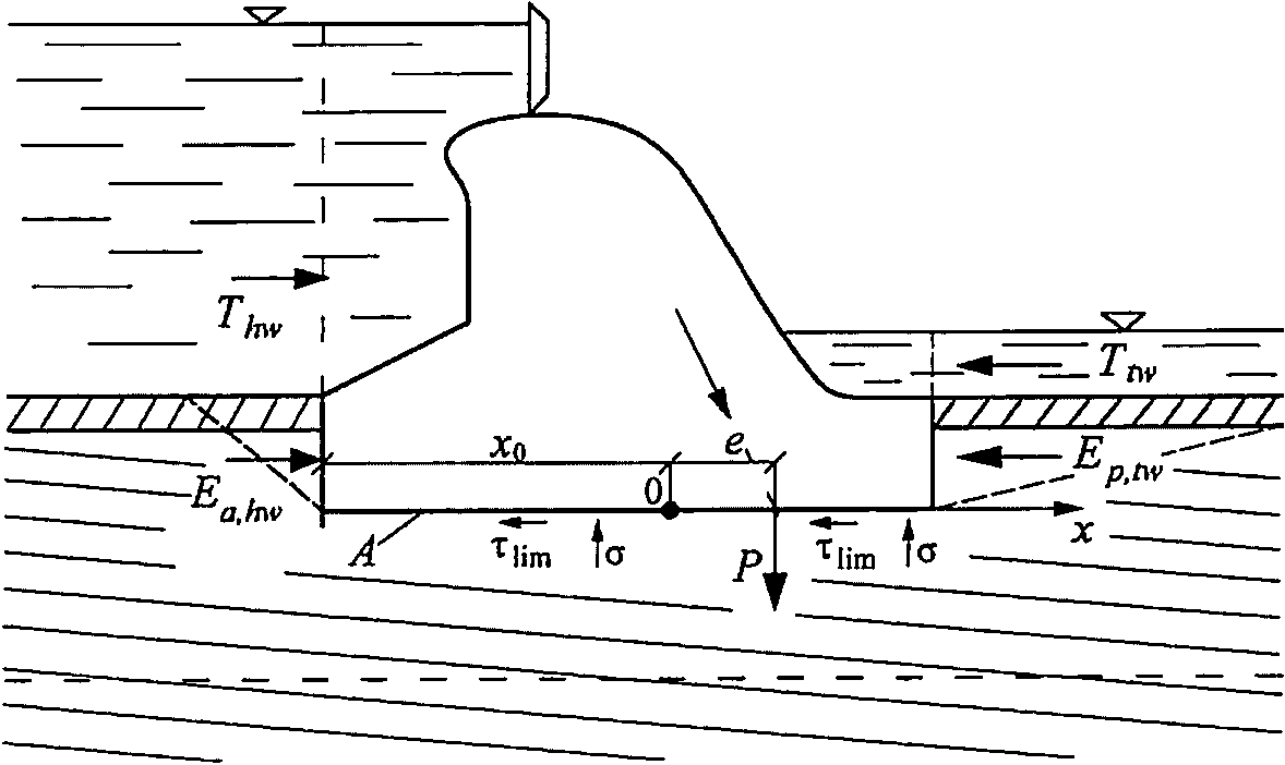 Ep,tw - расчетное значение горизонтальных составляющих пассивного давления грунта с низовой стороны сооружения;