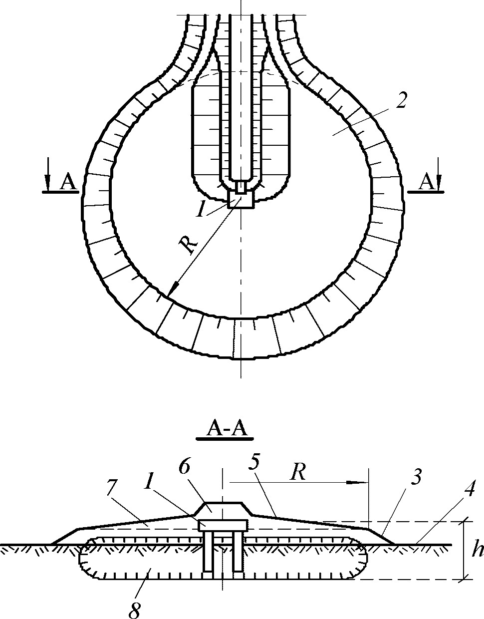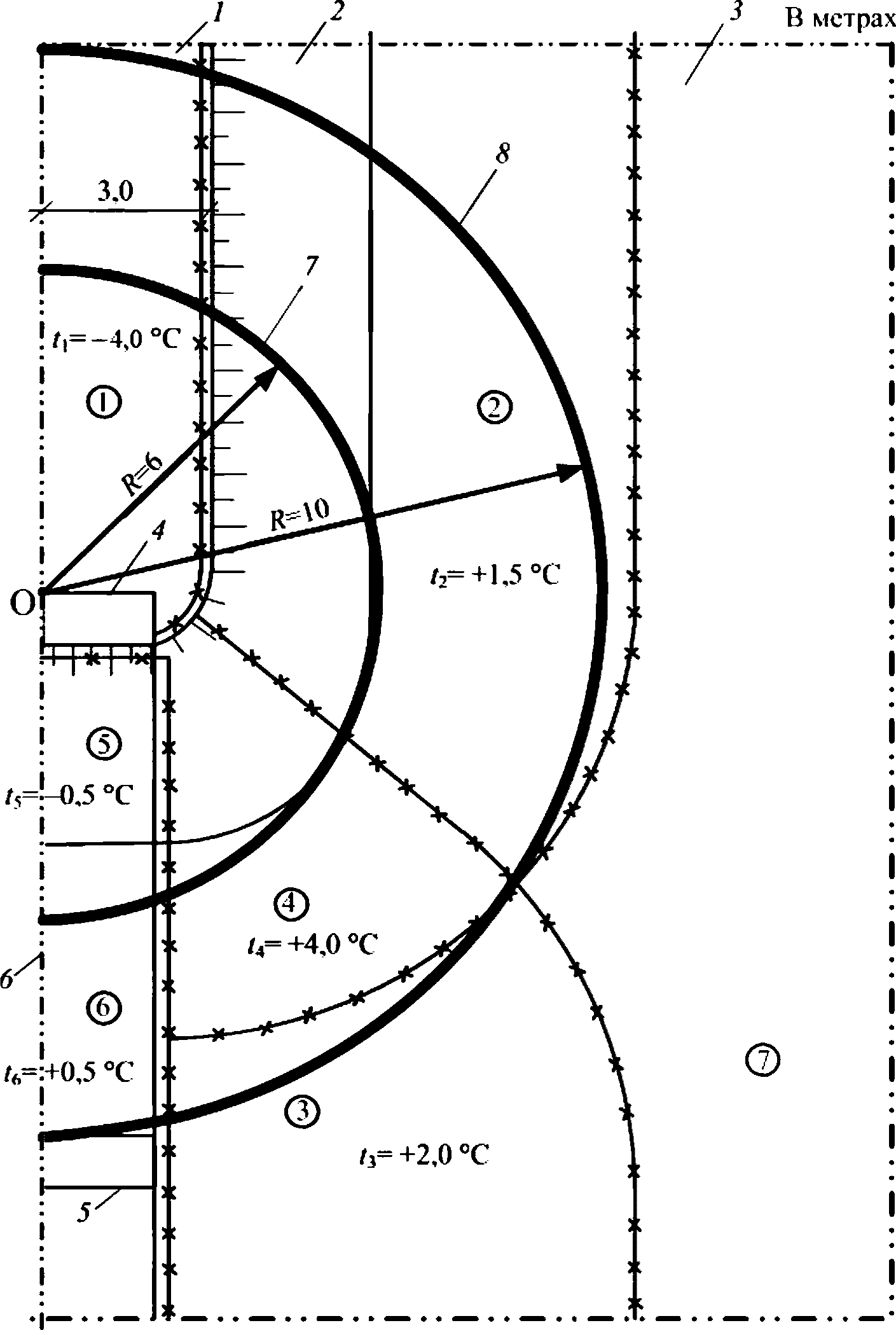 7, 8 - зоны теплового влияния в точке О для глубины