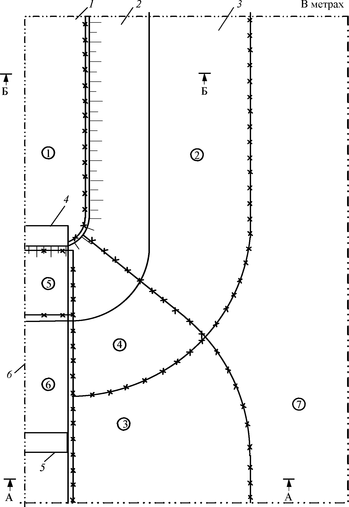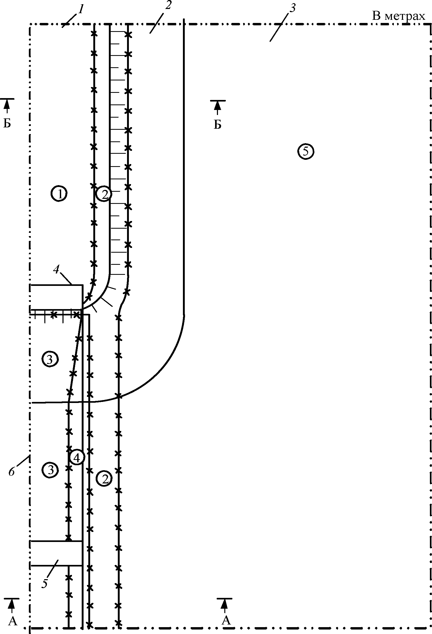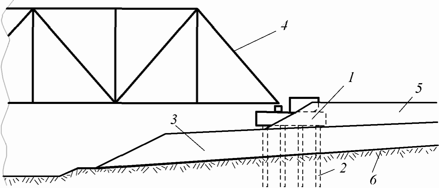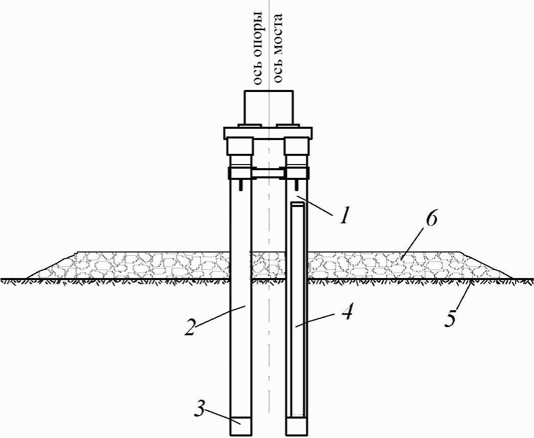5 - промежуточная опора; 6 - продольная ось моста;