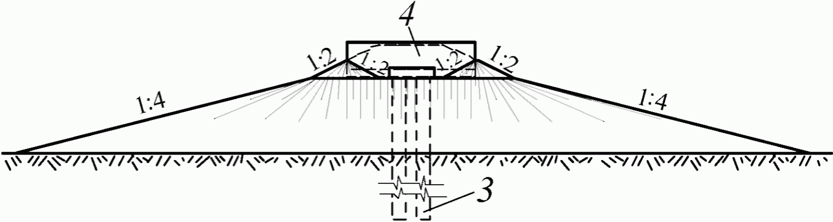 3.23 уширенная площадка: Насыпь с горизонтальной поверхностью, размеры которой в плане существенно превосходят ее высоту, устраиваемая около какого-либо сооружения (опора моста, насыпь железной или автомобильной дороги) с целью понижения температуры грунтового основания основного сооружения.