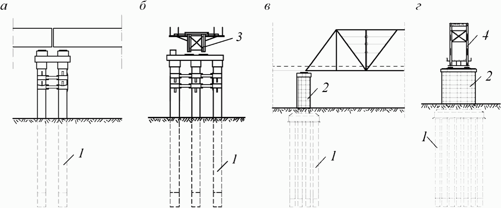 4.2 При проектировании фундаментов опор на многолетнемерзлых грунтах в зависимости от их конструктивных и технологических особенностей и мерзлотно-грунтовых условий применяется один из следующих принципов использования грунтов в качестве основания: