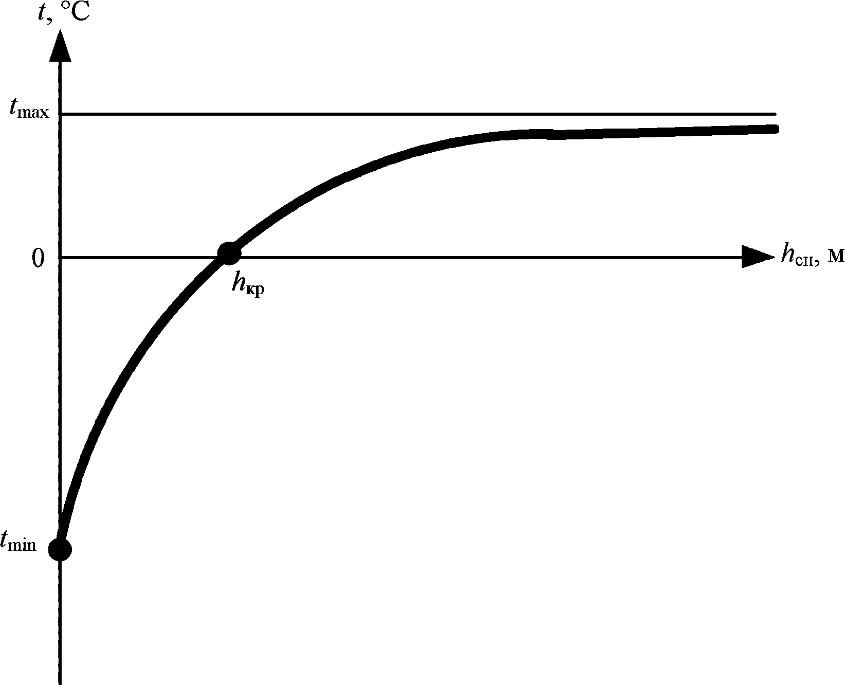 hкр снежного покрова примерно до 0,5 м (это зависит от плотности снега и др. условий) охлаждающий эффект исчезает. При дальнейшем увеличении температура грунта на глубине нулевых амплитуд асимптотически стремится к