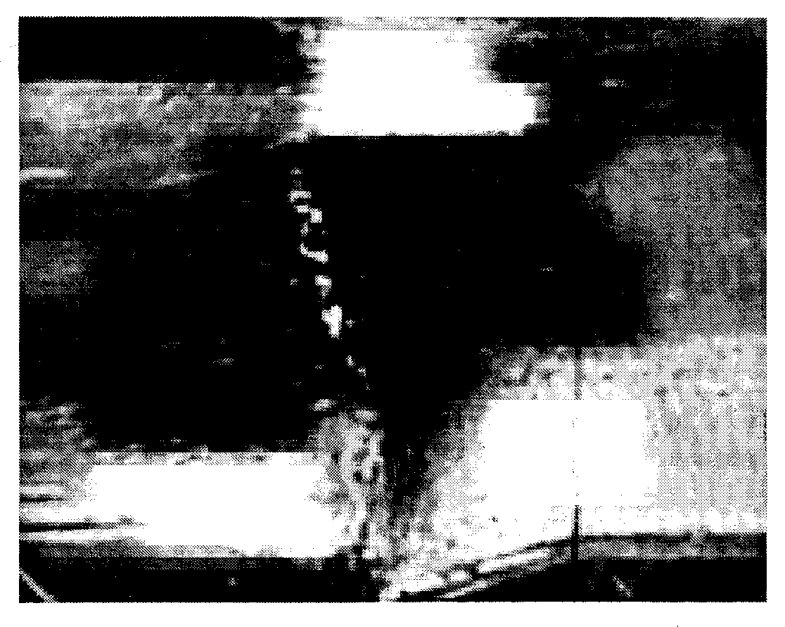 Горизонтальное расслоение литой части усовика и сердечника из-за наличия оксидных плен и неспаев в металле | Вне стыка | ||