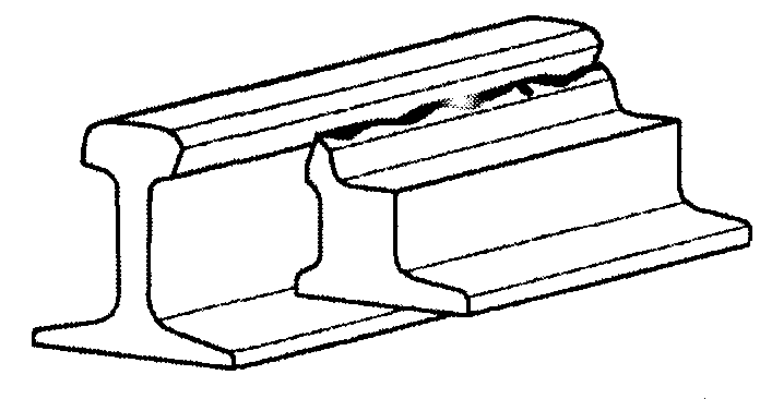 В процессе эксплуатации в местах сварных швов из-за нарушения технологии режима сварки, наличия неметаллических включений, трещин в месте сварки или наличия зарубов образуются поперечные трещины в головке. | ||