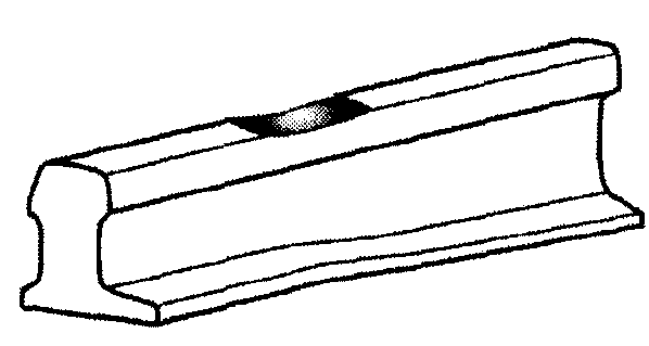 Вследствие неоднородности механических свойств металла, получающейся при сварке, образуется местное смятие головки (седловина). | ||