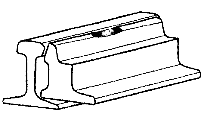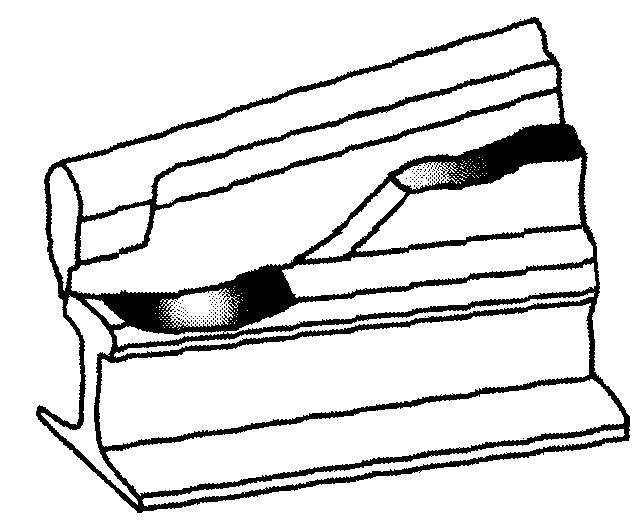 ![]() | Поперечные трещины в головке элемента стрелочного перевода из-за нарушений технологии контактной сварки в месте сварного шва | Расположение и обозначение: |