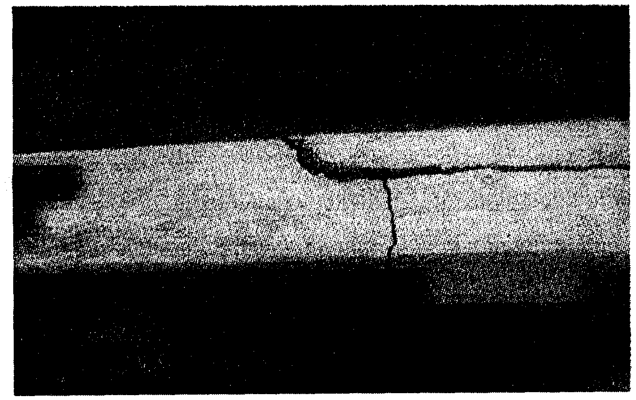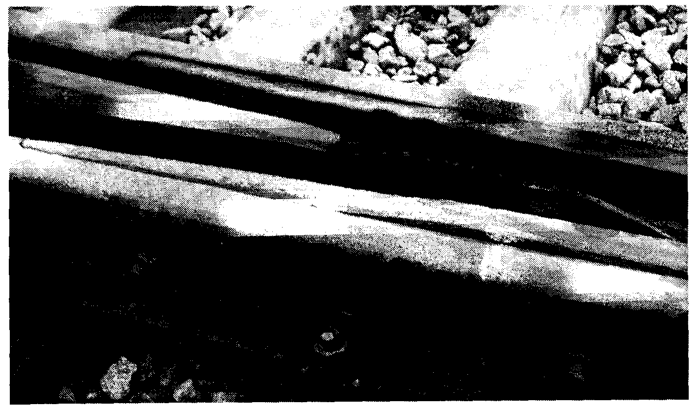 В процессе эксплуатации в местах сварных швов из-за нарушения технологии алюмотермитной сварки, наличия неметаллических включений, трещин в месте сварки или наличия зарубов образуются поперечные трещины в подошве. | ||