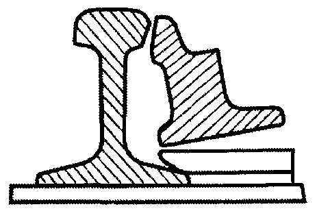 Контррельс из спецпрофиля с трещинами любой величины считается остродефектным и должен быть немедленно заменен. | ||