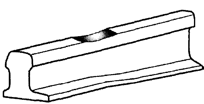 Вследствие неоднородности механических свойств металла, получающейся при алюмотермитной сварке, образуется местное смятие головки (седловина). | ||
