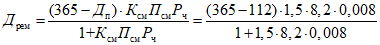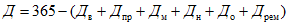 5.3. Количество рабочих суток машины в году Д определяется путем исключения из календарного времени года числа суток перерывов в работе машины по всем причинам, т.е.