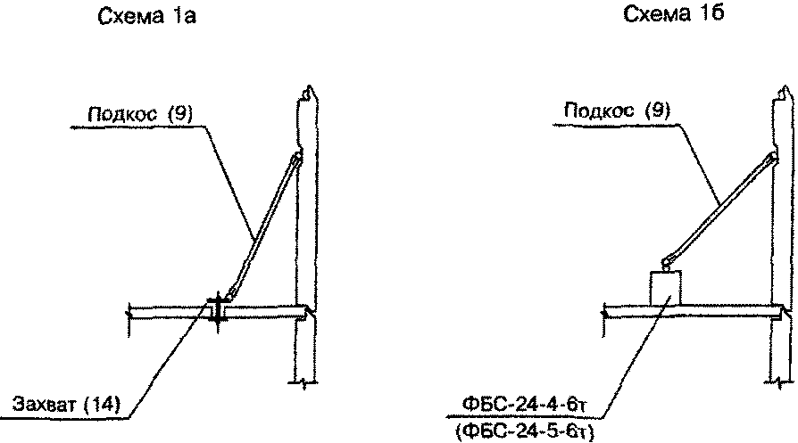 раздел 5). Нижние концы подкосов при этом закрепляют за строповочные петли фундаментных блоков типа ФБС-24-4-6т и ФБС-24-5-6т (см.