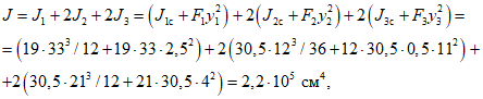 3.1. Определяем момент инерции J поперечного сечения балки.