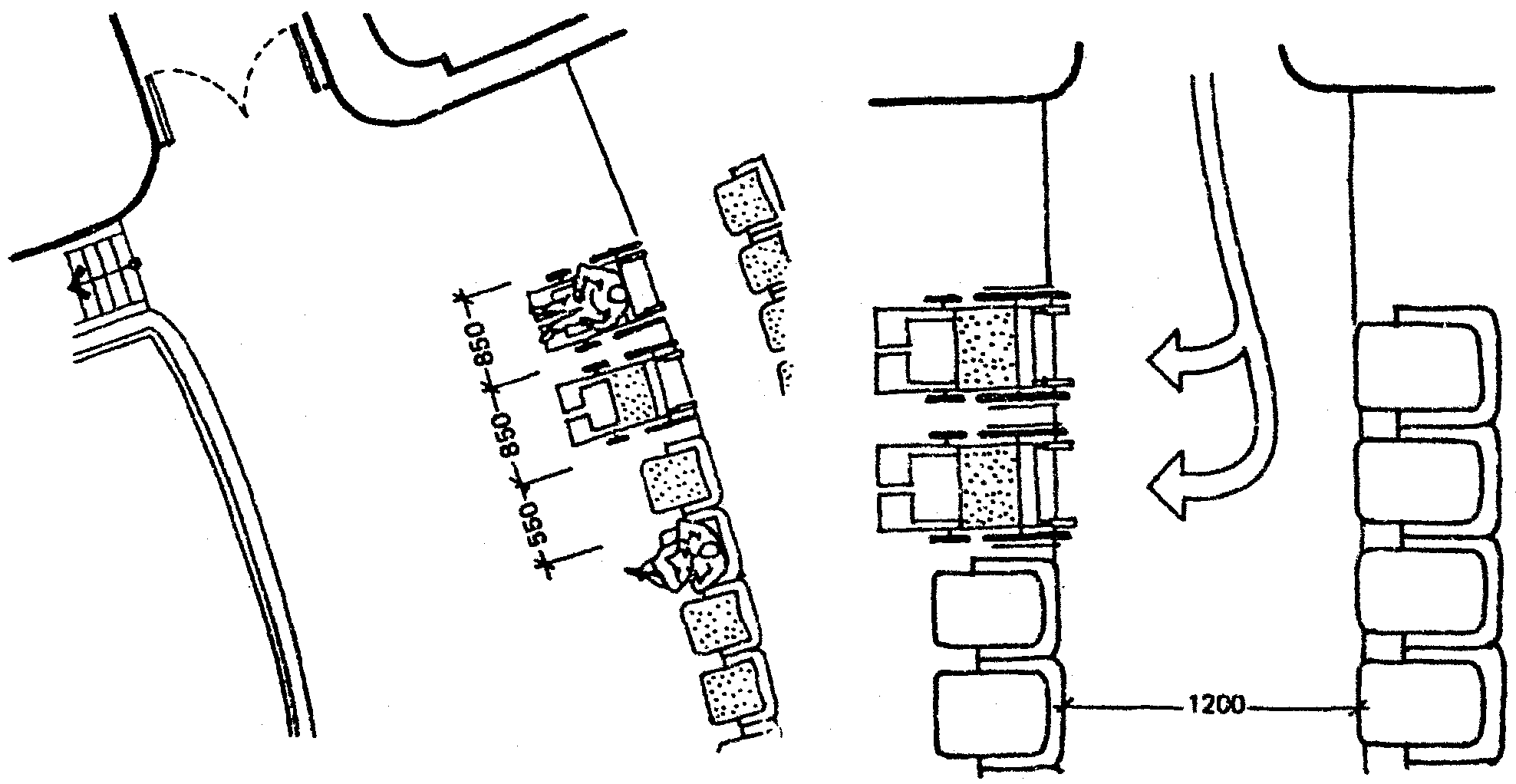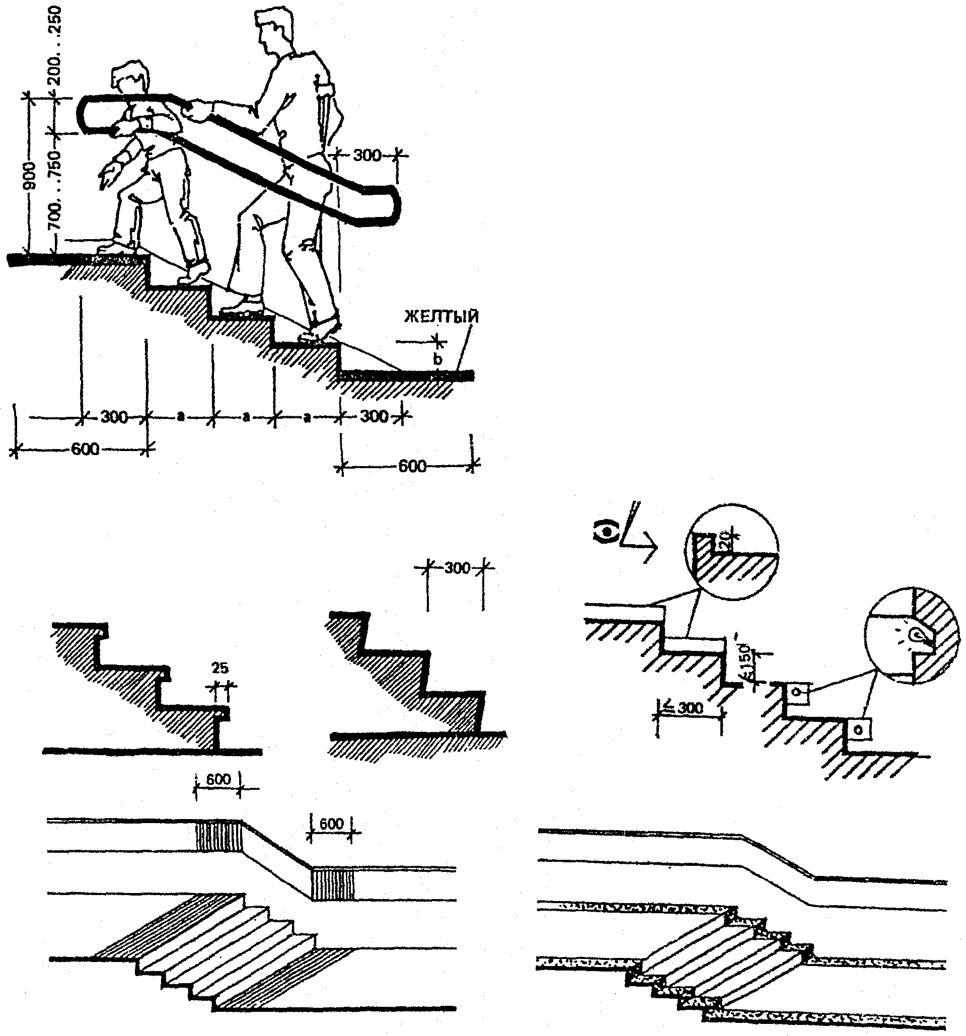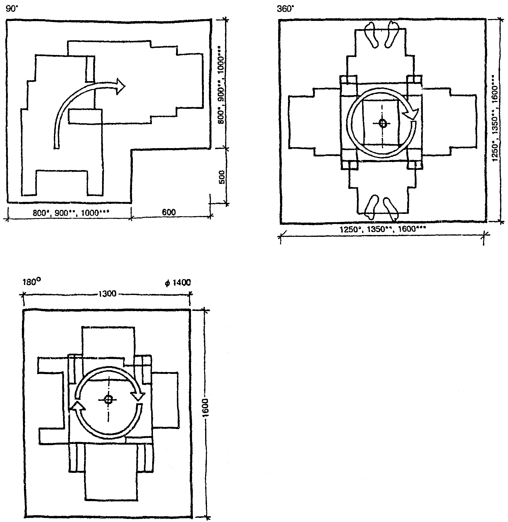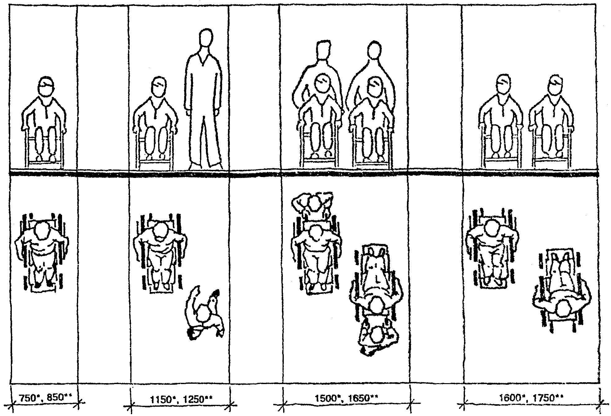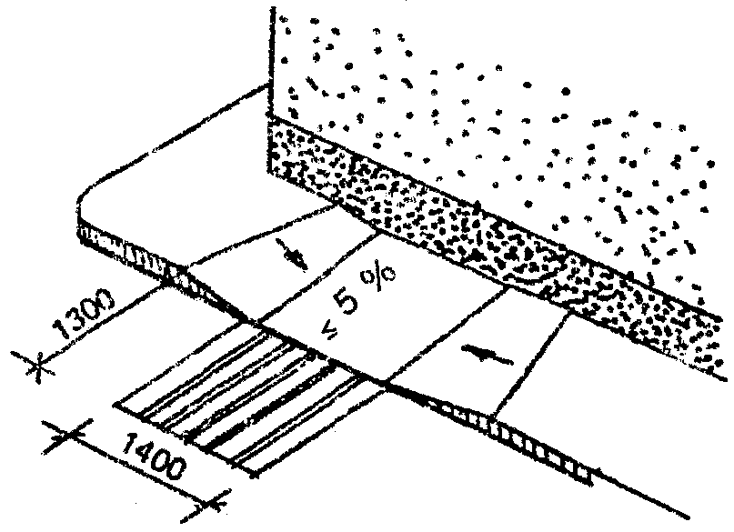 Минимальная свободная ширина, которая позволяет идущему человеку встретиться и разойтись с человеком на кресле-коляске, составляет 1500 мм, для разъезда двух колясок - 1800 мм (рис. 31).