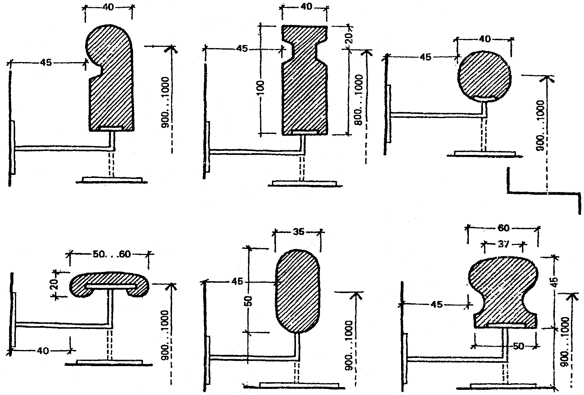 Открытые участки стен в учебно-воспитательных учреждениях для детей с нарушением ОДА следует оборудовать поручнями на высоте 0,5 м в дошкольных учреждениях и на высоте 0,5; 0,7 и 0,9 м в школах-интернатах и домах-интернатах.