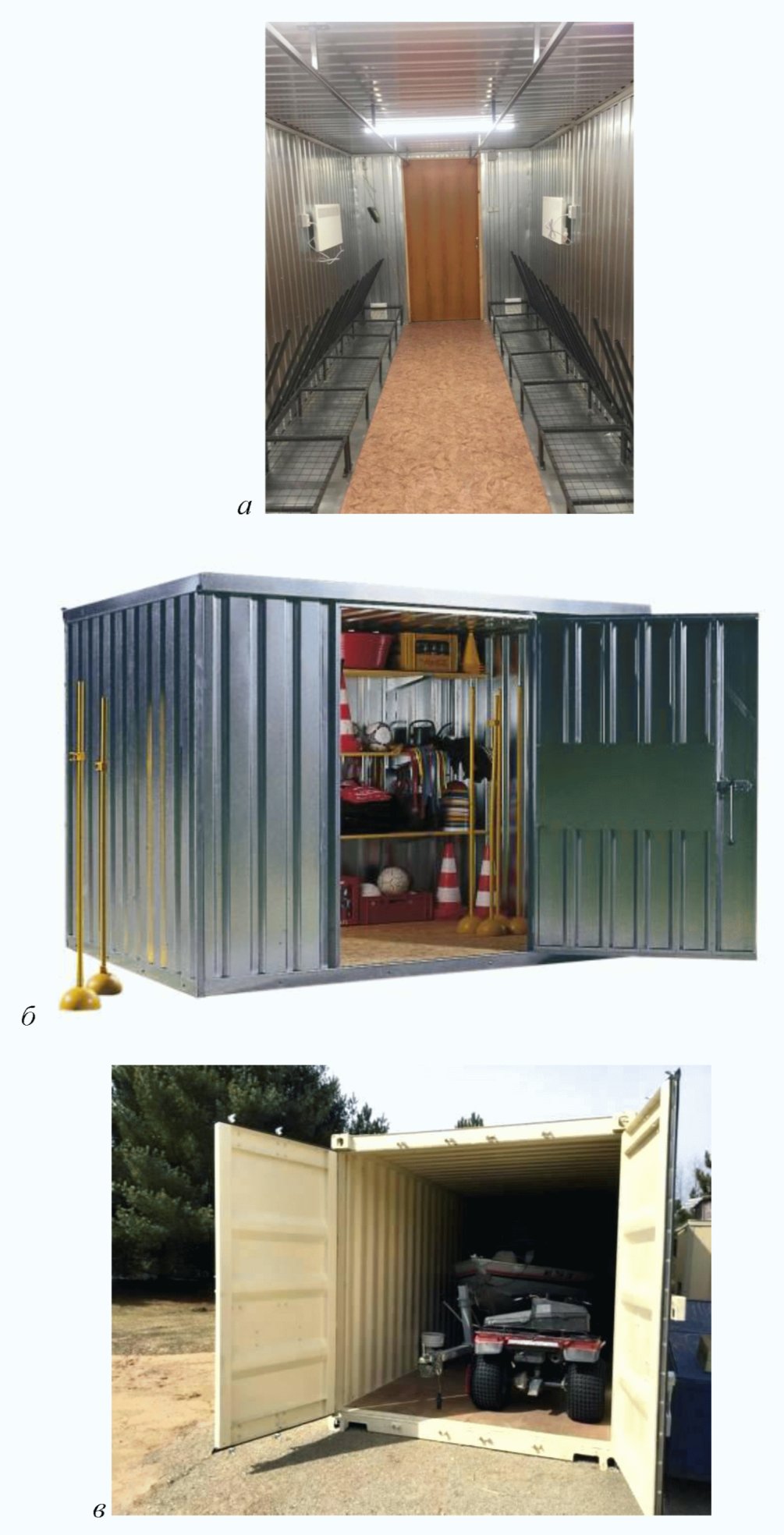 а - модуль сушилка для экипировки; б - модуль инвентарная;