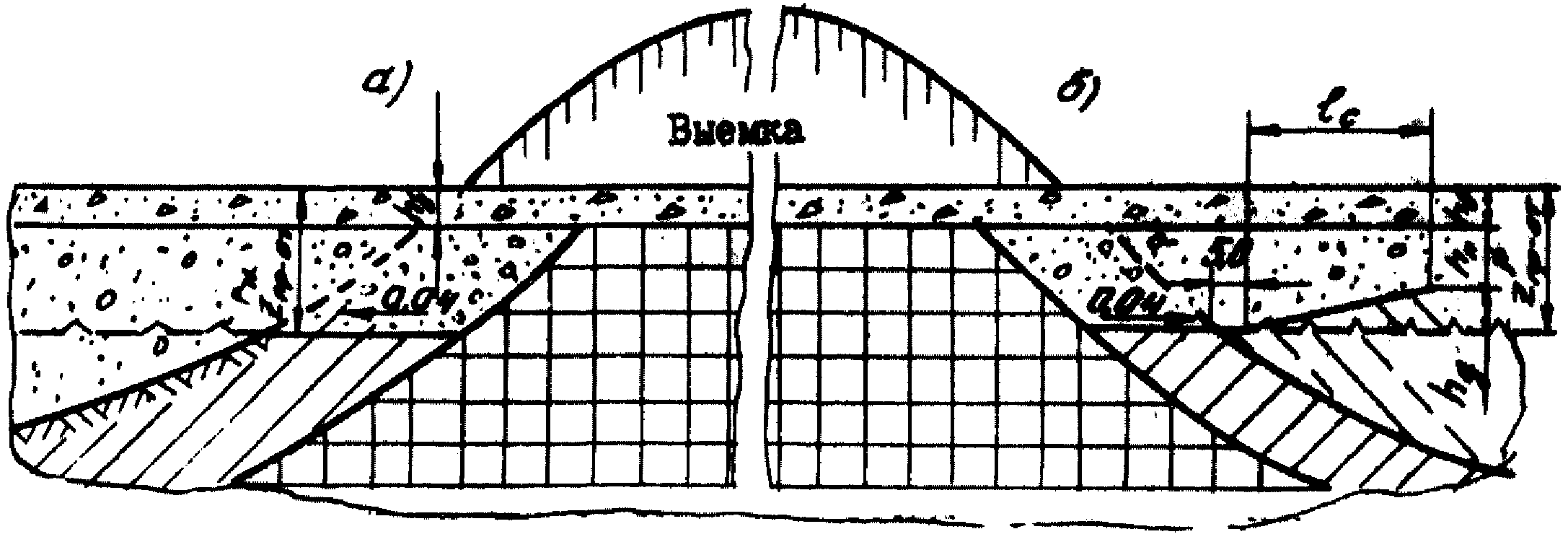 концевые участки выемок в скальных дренирующих и других непучинистых грунтах, если эти участки сложены пучинистыми грунтами; насыпи в пределах марей и других бессточных и слабосточных участков трассы (в том числе на подходах к выемкам);