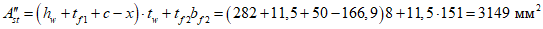 Усилия в стальной части сечения относительно ее центра тяжести: Nst2 = -704,8 кН, Mst2 = -337,4 кНм.