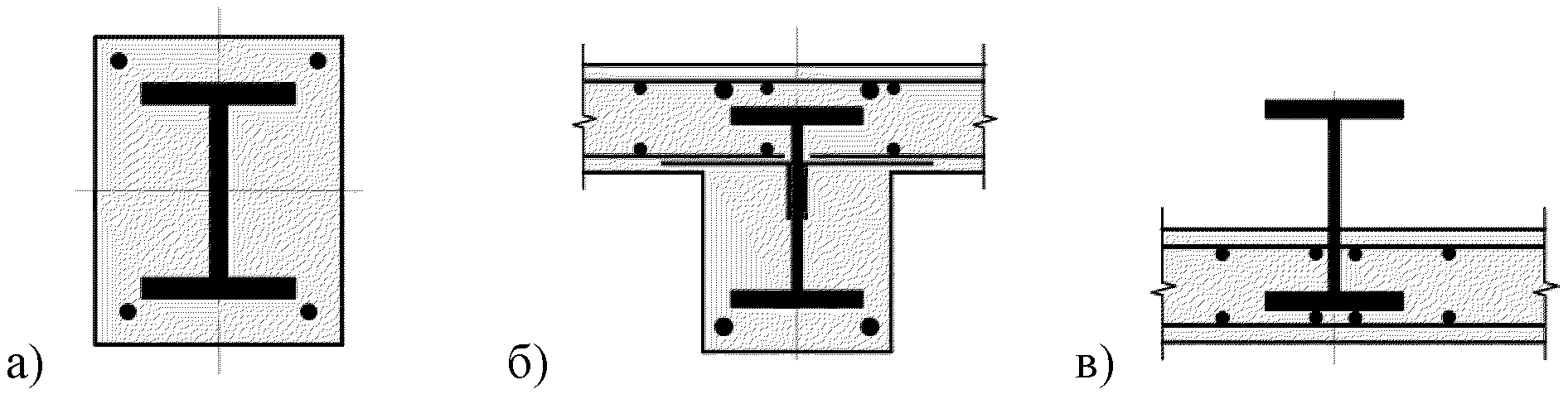 СП 266.1325800.2016 и содержат рекомендации для расчета и проектирования элементов, подверженных изгибу: сталежелезобетонных плит перекрытий с профилированным настилом (рисунок 4.1), комбинированных балок полностью обетонированных прямоугольного и таврового сечения