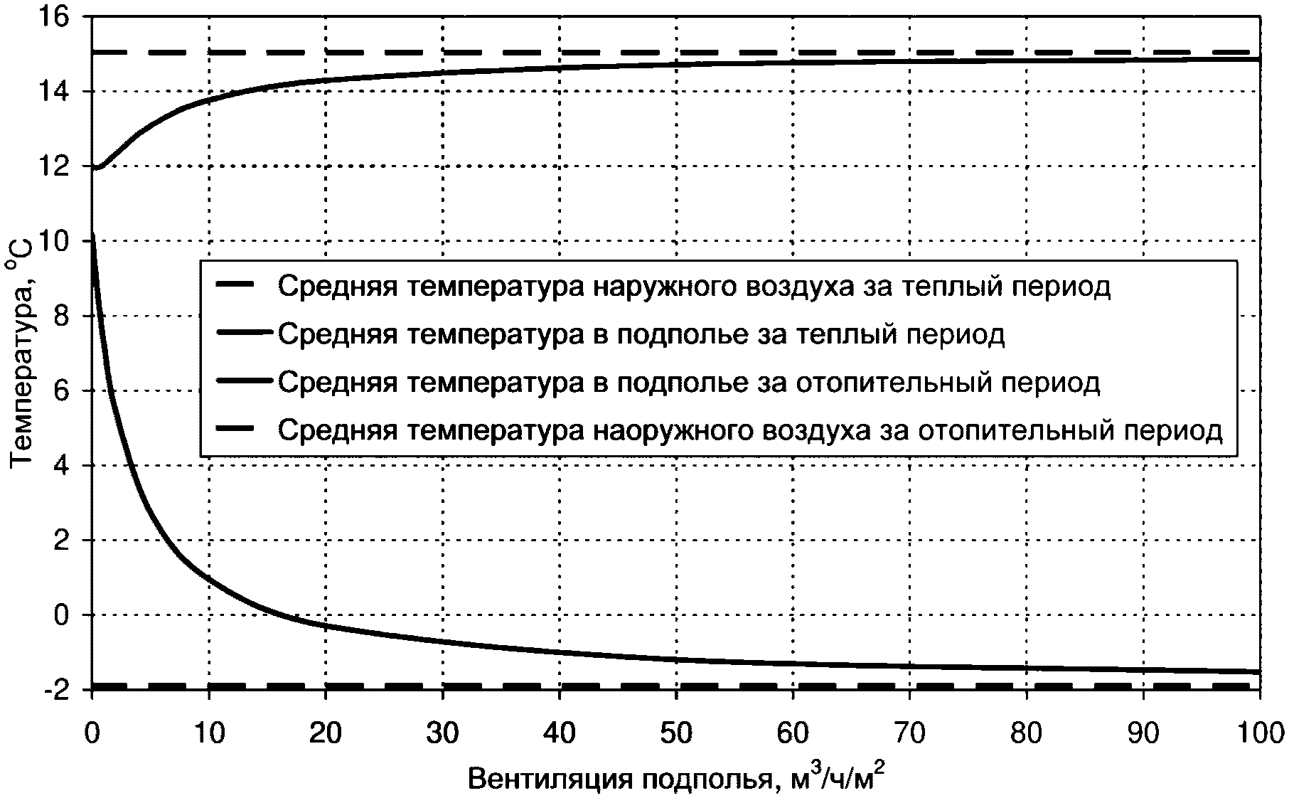 Для подполья выполнены расчеты с варьированием интенсивности вентиляции (в м