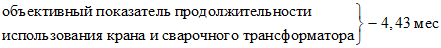 Объектный показатель продолжительности использования сварочного трансформатора принимаем по времени возведения фундамента и надземной части станции, а именно - 4,43 мес.