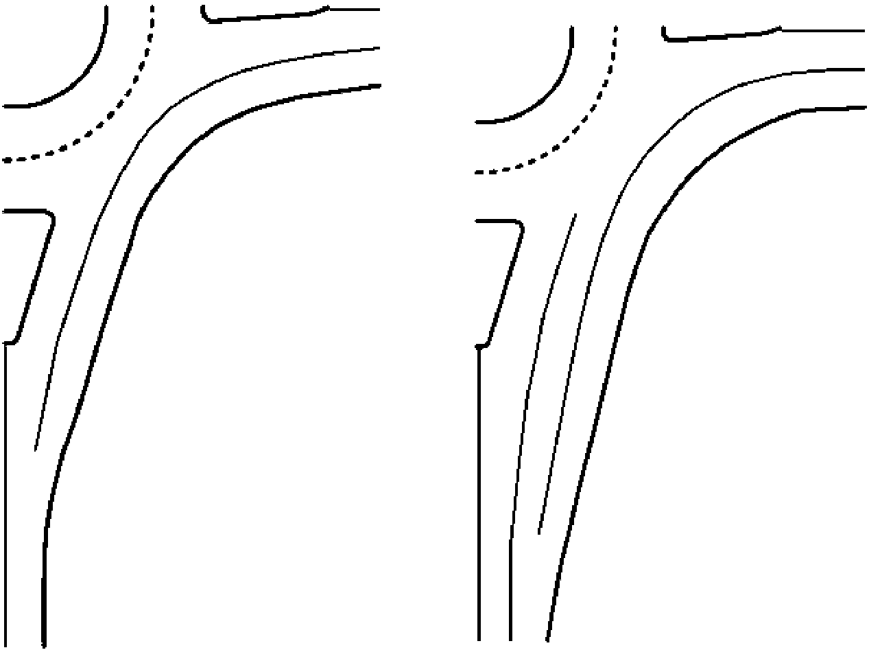IIа | Средние кольцевые пересечения. Наиболее распространенный тип пересечения для городских и внегородских дорог. Обладает достаточно высокой пропускной способностью при небольшой площади узла |